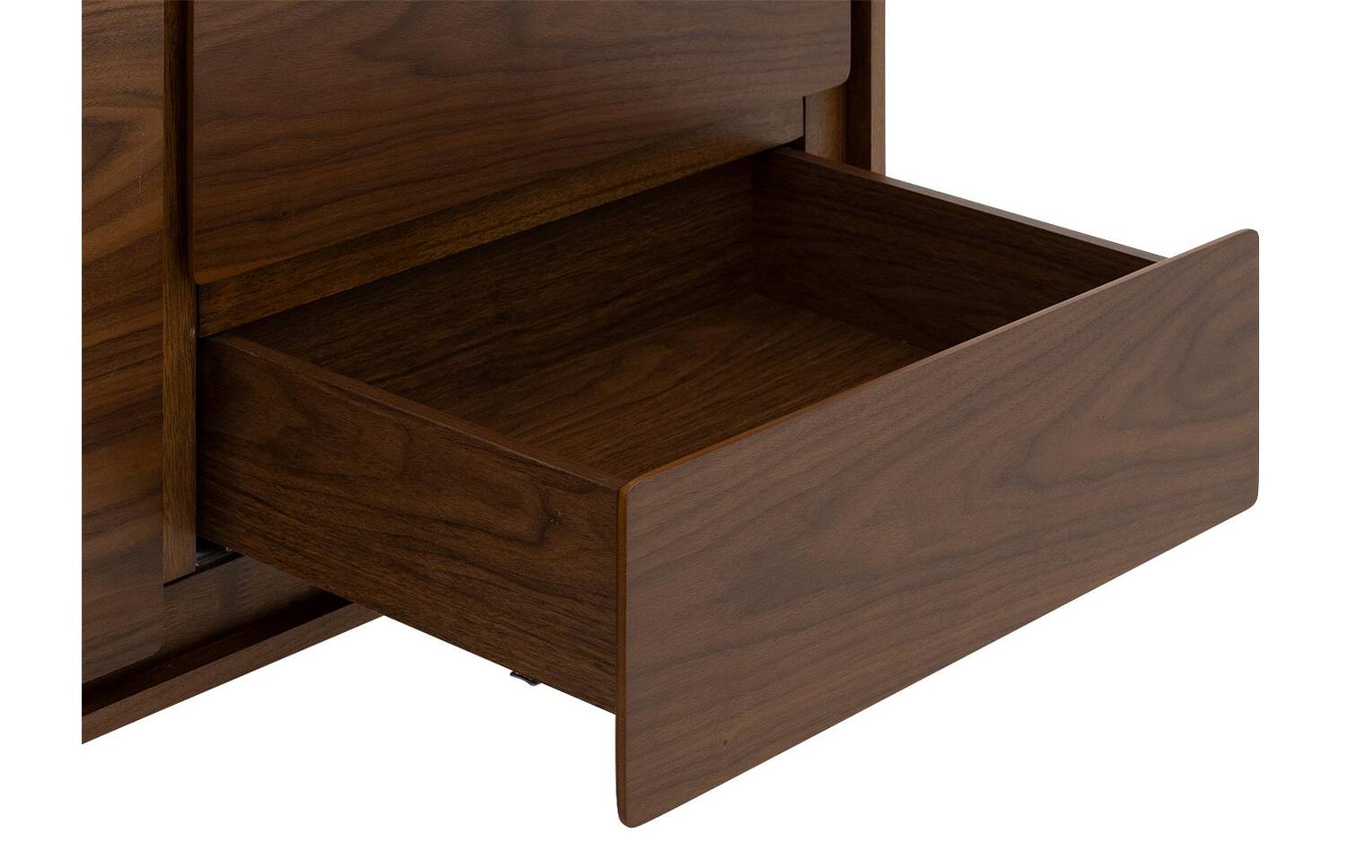 De gelakte afwerking beschermt het essenhoutfineer tegen dagelijks gebruik en geeft een subtiele glans. Het push-to-open systeem zorgt voor een strakke vormgeving zonder handgrepen, terwijl je toch eenvoudig bij je spullen kunt.