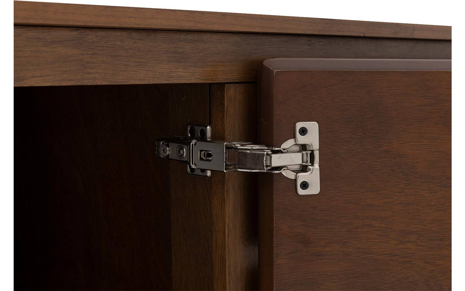 Stijlvolle details van dit bruine essenhout dressoir