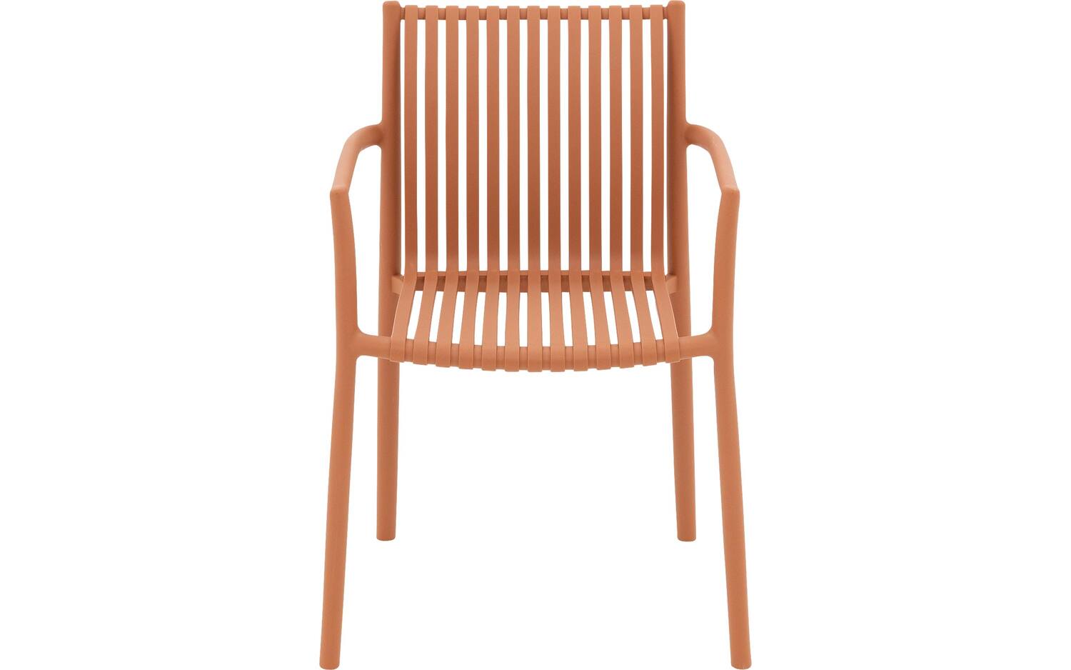 Het moderne design van tuinstoel Loeffe springt meteen in het oog. De levendige oranje kleur brengt direct zonnige energie in je tuin of op je terras. Het duurzame kunststof is niet alleen stevig maar ook weerbestendig, waardoor de stoel mooi blijft, seizoen na seizoen.
