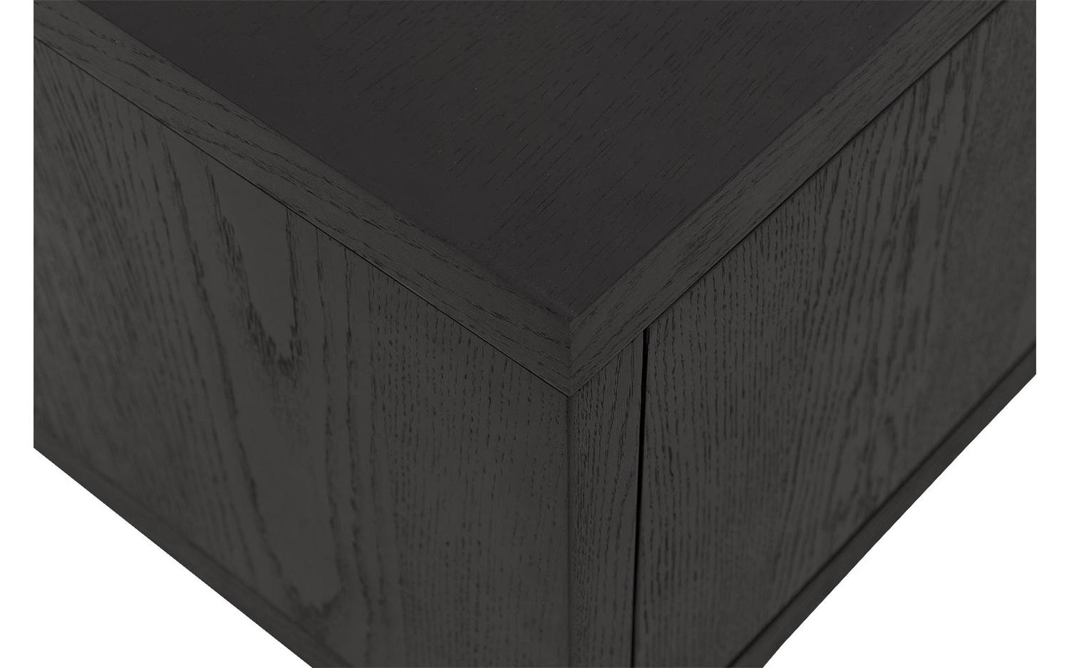 TV meubel Barcelona combineert stoere uitstraling met tijdloze elegantie. Het zwart gelakte eiken fineer met natuurlijke houtnerfstructuur voegt direct karakter toe aan je interieur. Door de strakke lijnen en greeploze afwerking krijg je een rustige, opgeruimde uitstraling - precies wat je moderne woonkamer nodig heeft.