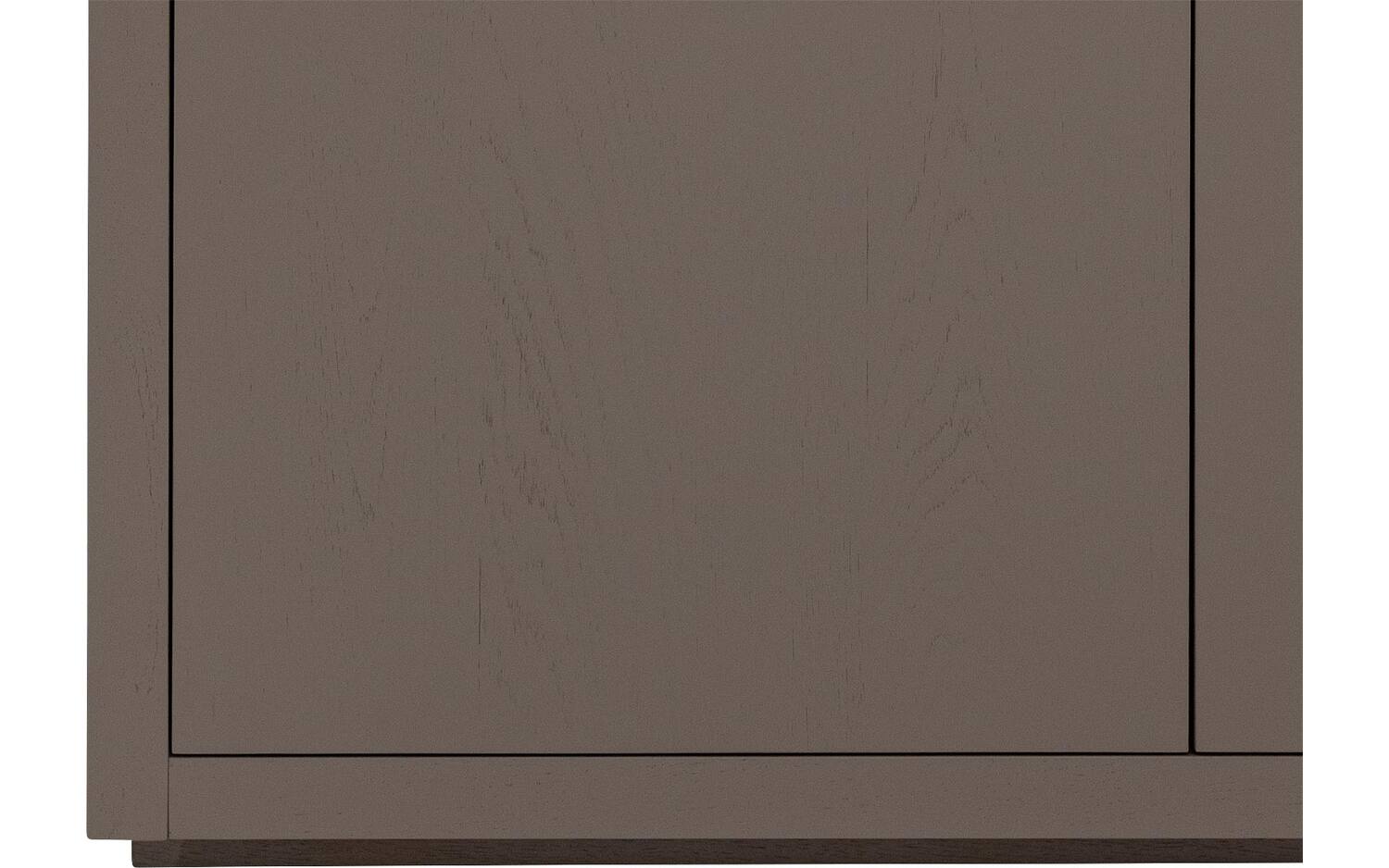 Het gelakte eiken fineer van tv meubel Barcelona beschermt effectief tegen vlekken en kringen. De warme taupe kleur geeft je woonkamer een rustige uitstraling. Het push-to-open systeem zorgt ervoor dat je de deuren eenvoudig opent zonder handgrepen, wat bijdraagt aan het strakke design.