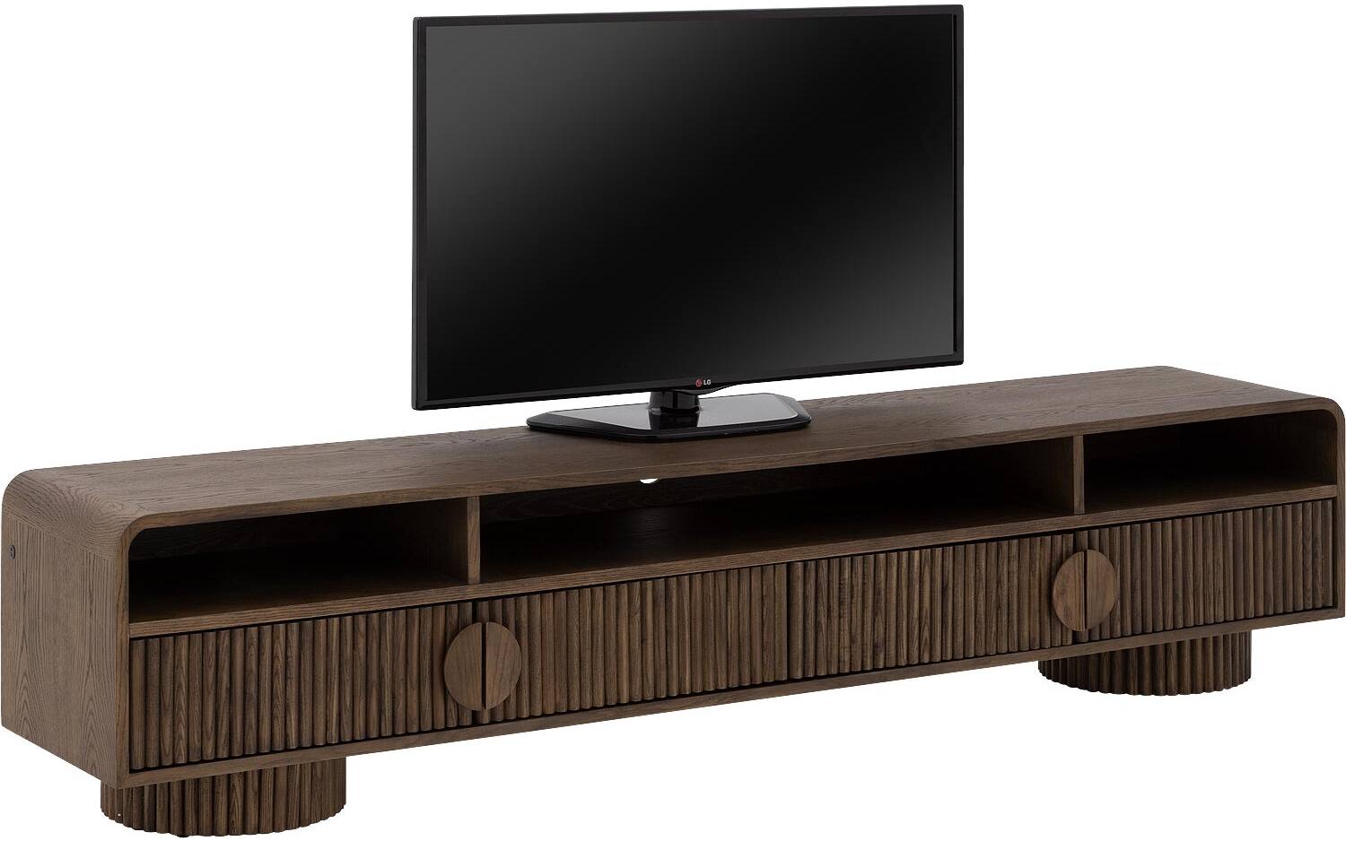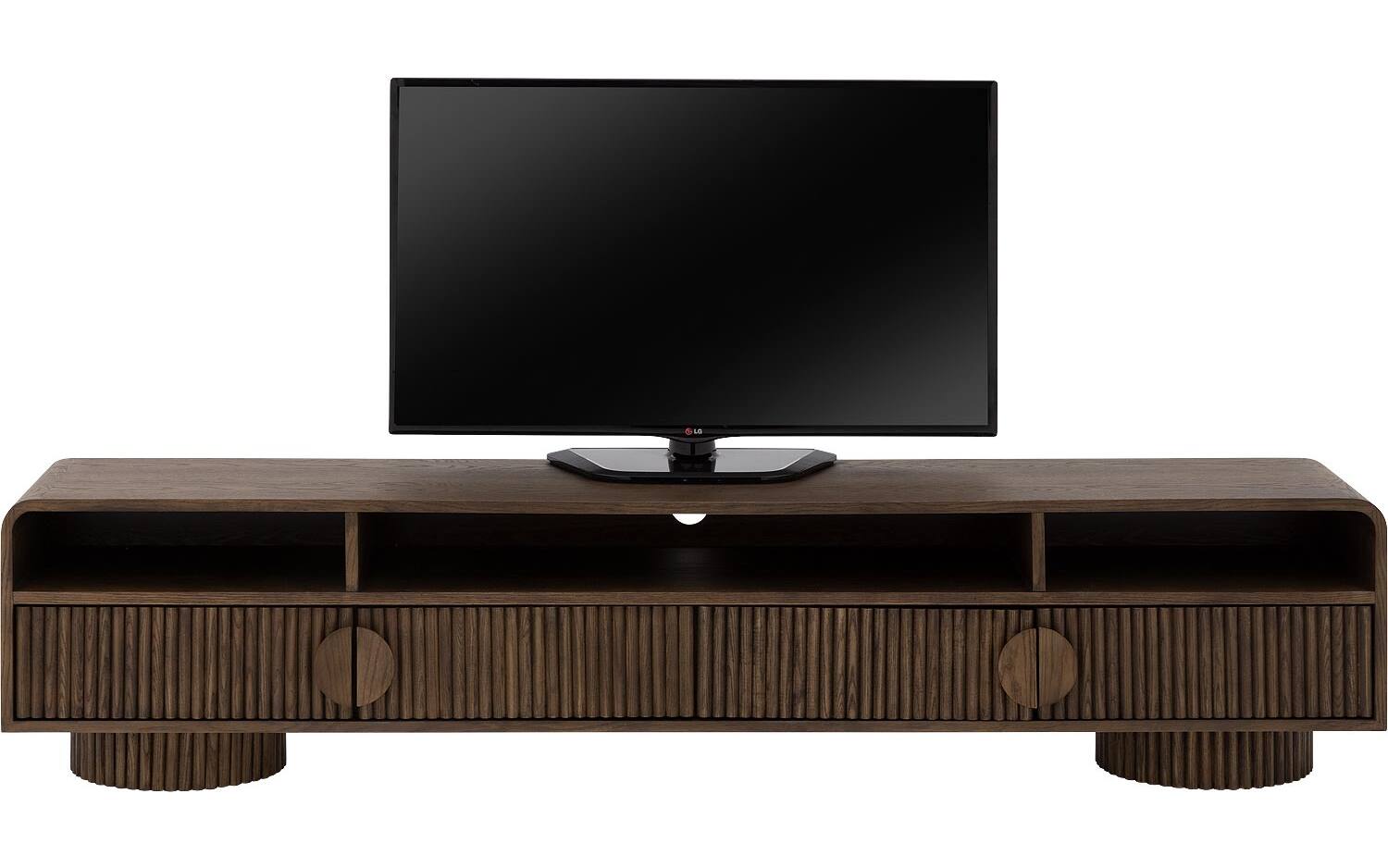 Met een breedte van 210 cm en hoogte van 42 cm past dit tv meubel onder vrijwel elke televisie. De open vakken zijn ideaal voor je receiver, spelcomputer of decoratie, terwijl de gesloten compartimenten rommel uit het zicht houden.