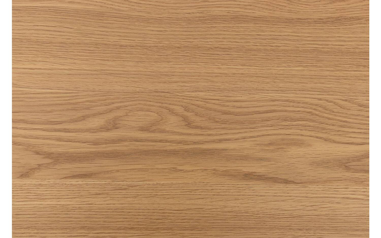 De duurzame lakafwerking beschermt het eiken fineer tegen kringen en vlekken, perfect voor dagelijks gebruik. De subtiele handgreepjes maken het design compleet zonder de strakke lijnen te verstoren.