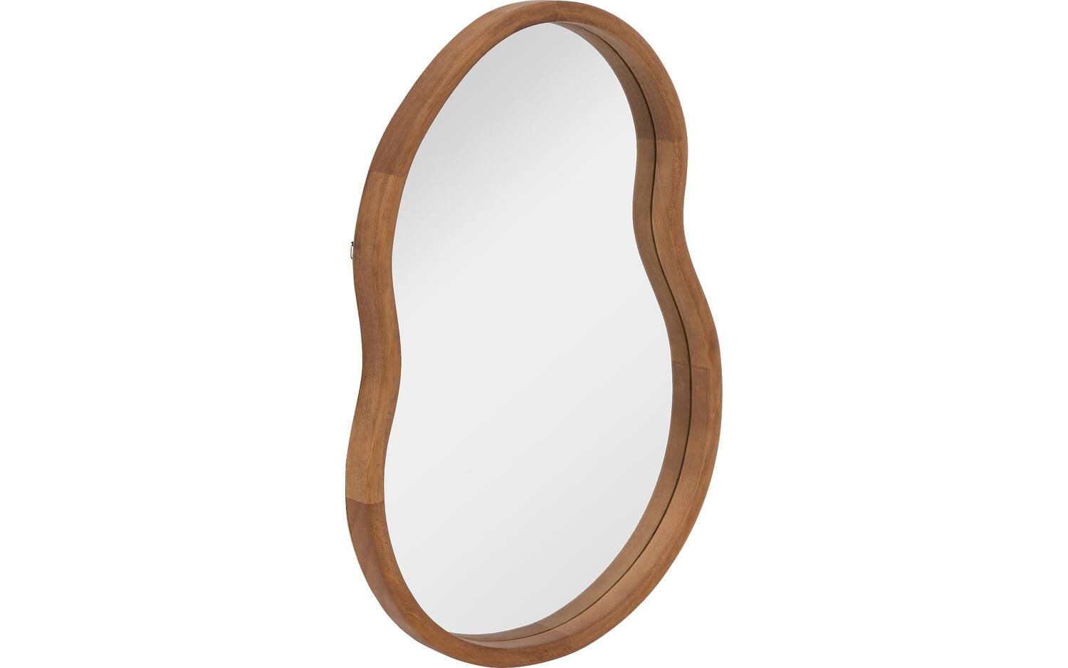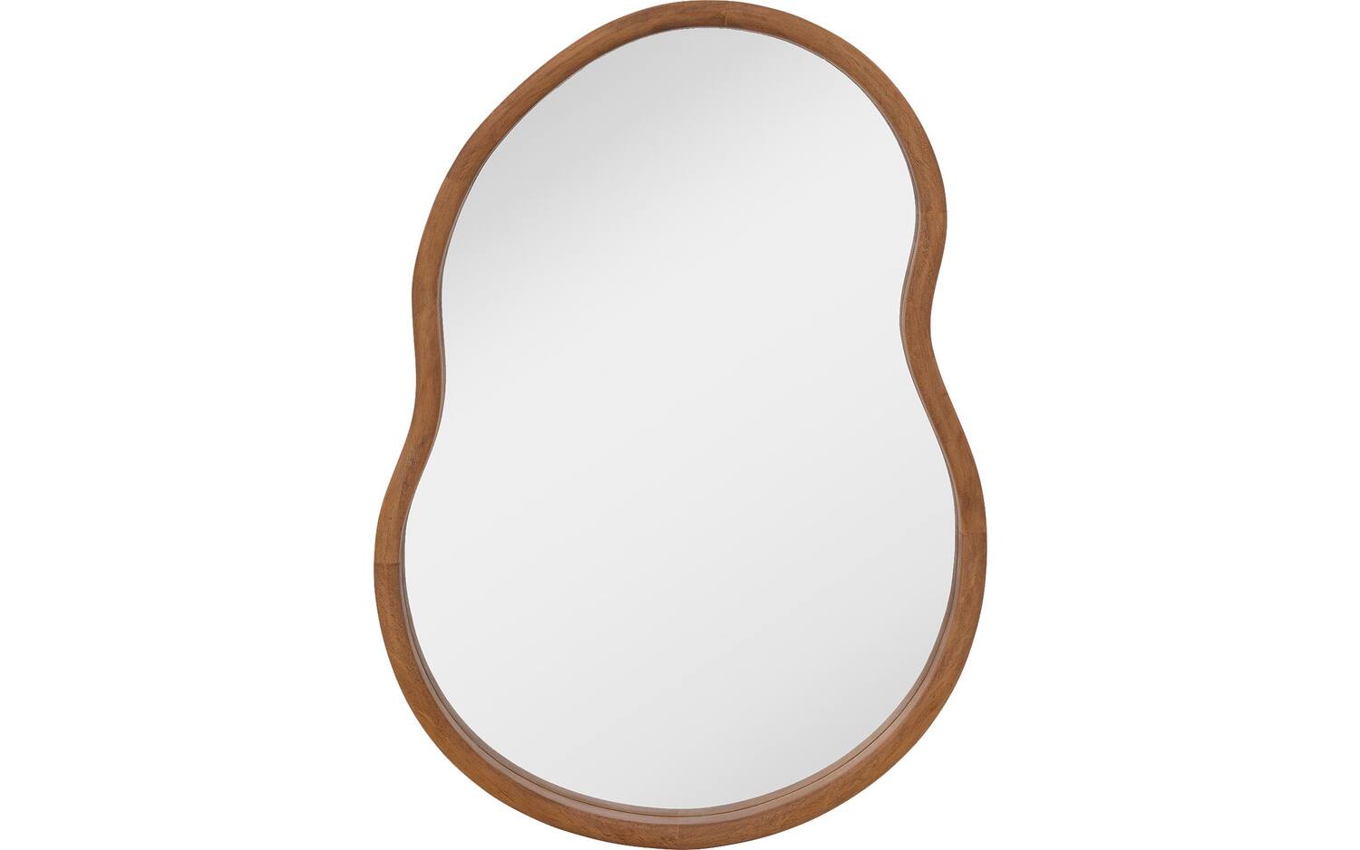 Wandspiegel Ragnhild betovert met zijn organische vorm en warme houten lijst die elk interieur een natuurlijke elegantie geeft. Deze unieke spiegel van 45 x 62 cm combineert helder spiegelglas met een karakteristieke houten omlijsting die zorgt voor een zachte, vloeiende uitstraling. De organische vormgeving maakt van deze wandspiegel meer dan alleen een functioneel object - het is een stijlvol decoratief element dat ruimte creëert en licht weerkaatst in je woonkamer, slaapkamer of hal.