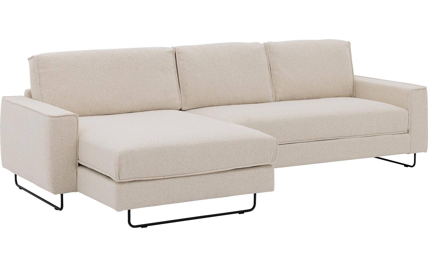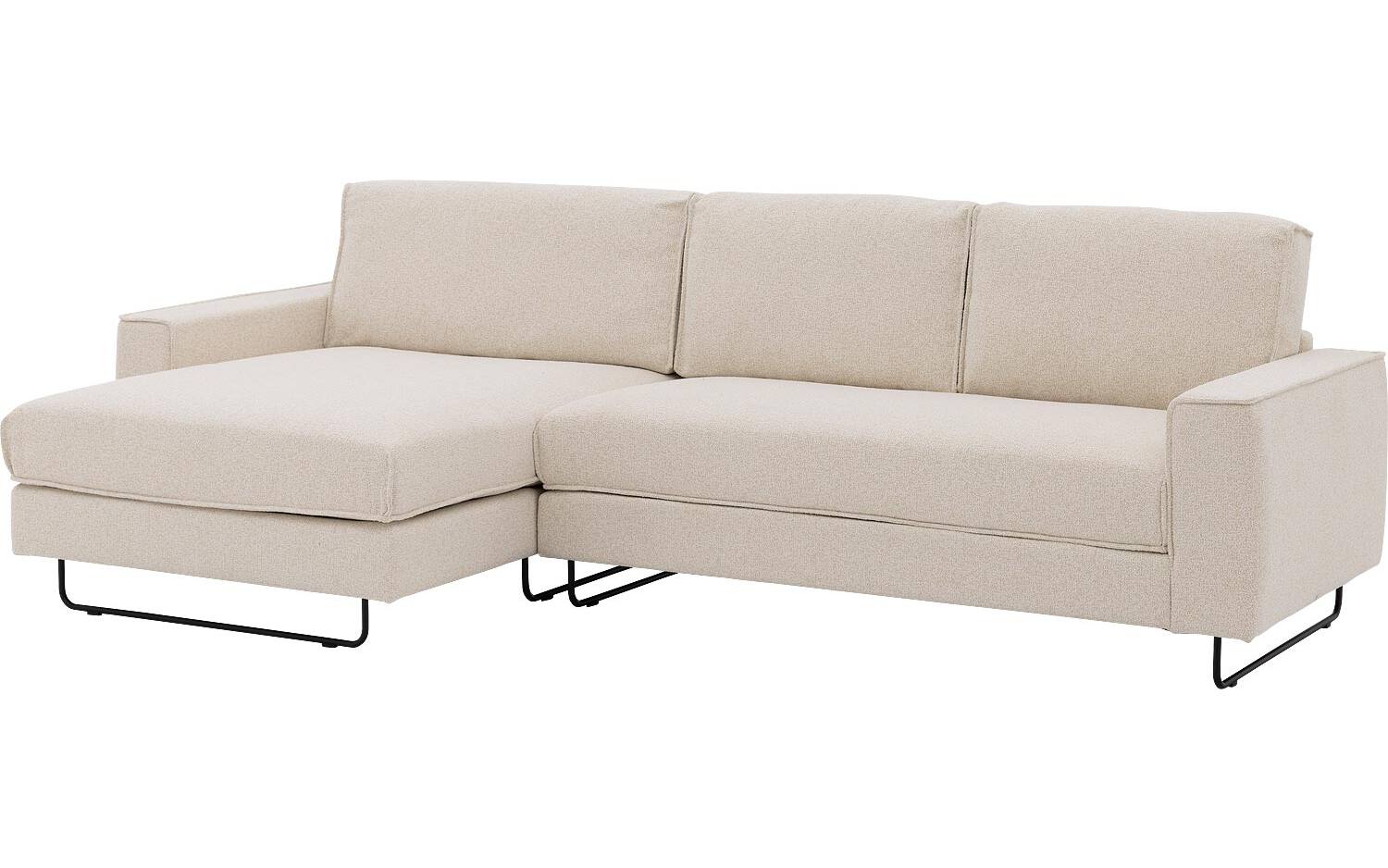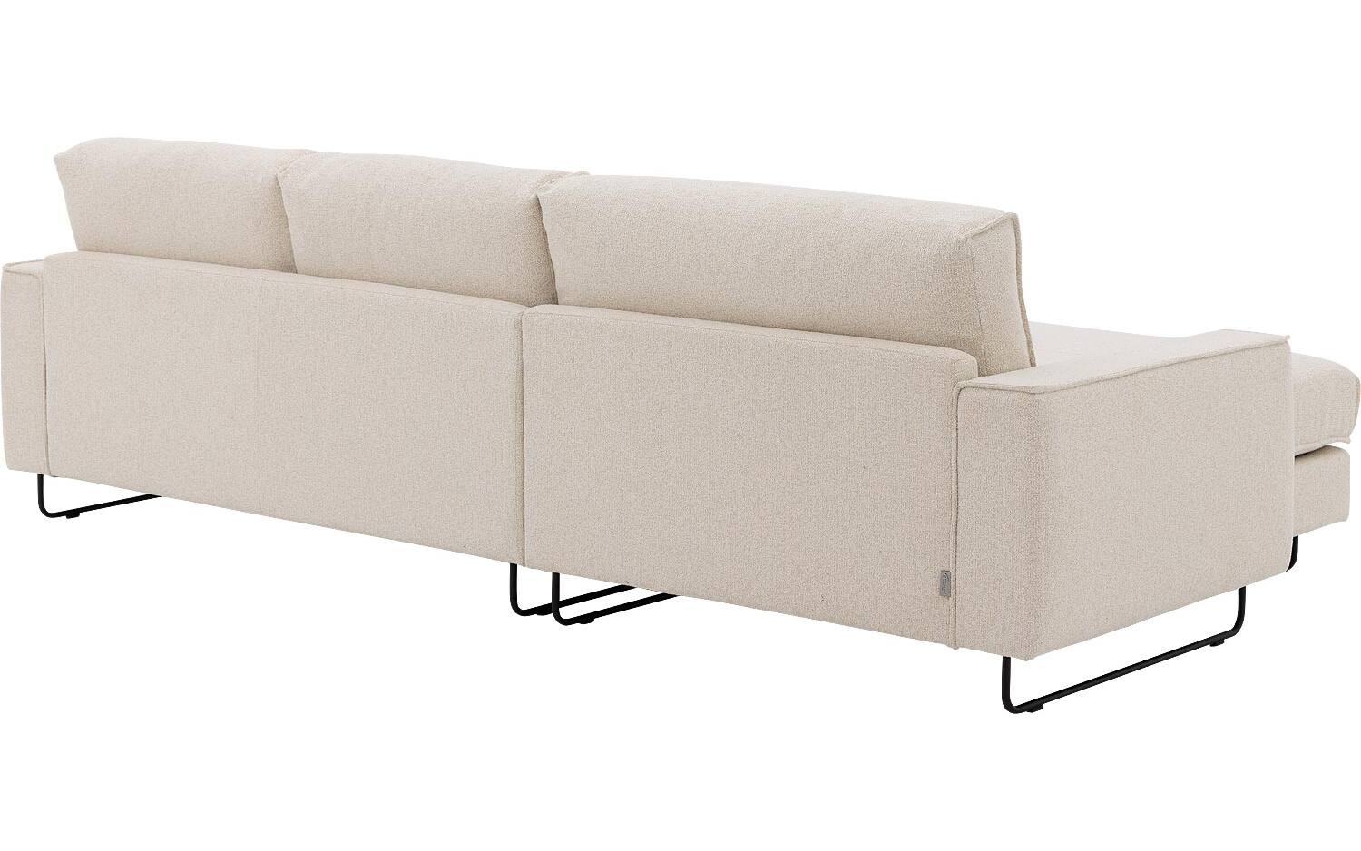 Deze hoekbank bestaat uit een 2,5-zits element met armleuning rechts en een chaise longue element links. De metalen beugelpoten geven de bank een luchtige uitstraling en maken schoonmaken eronder makkelijk. Perfect voor wie houdt van een stijlvol én praktisch interieur.
