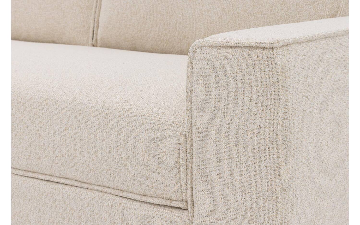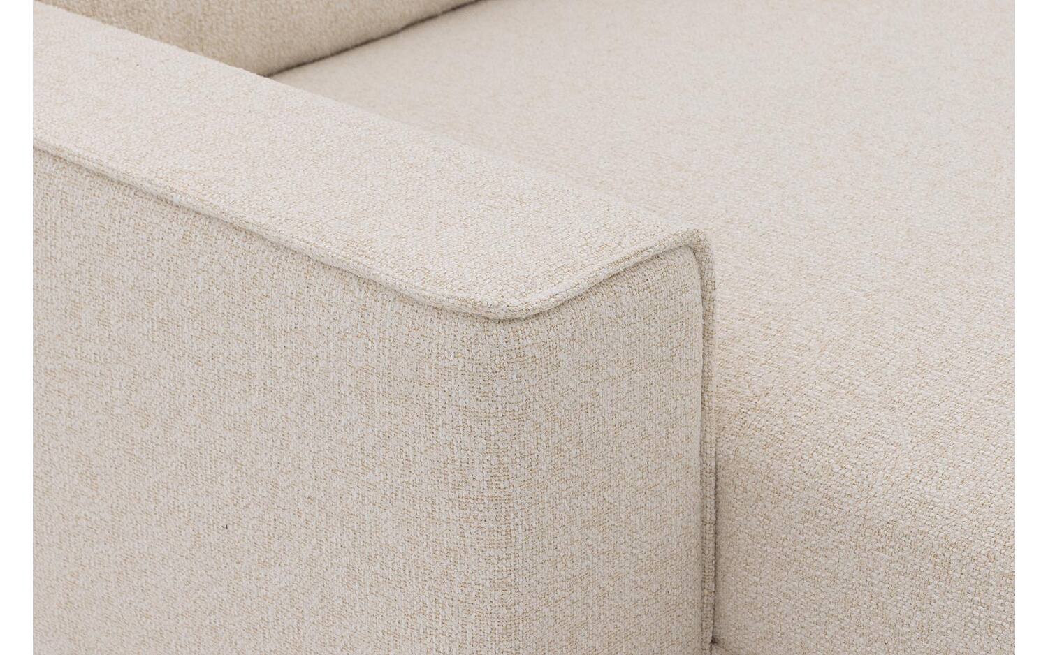 De grofgeweven ivoor stof heeft een gemeleerde uitstraling die warmte uitstraalt in je woonkamer. De metalen beugelpoten met ronde buis geven Jorney een elegant chic karakter. Deze combinatie van stof en metaal zorgt voor een verfijnde look die past in verschillende interieurstijlen.