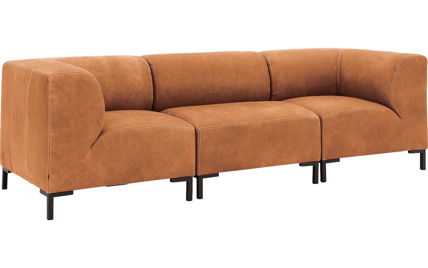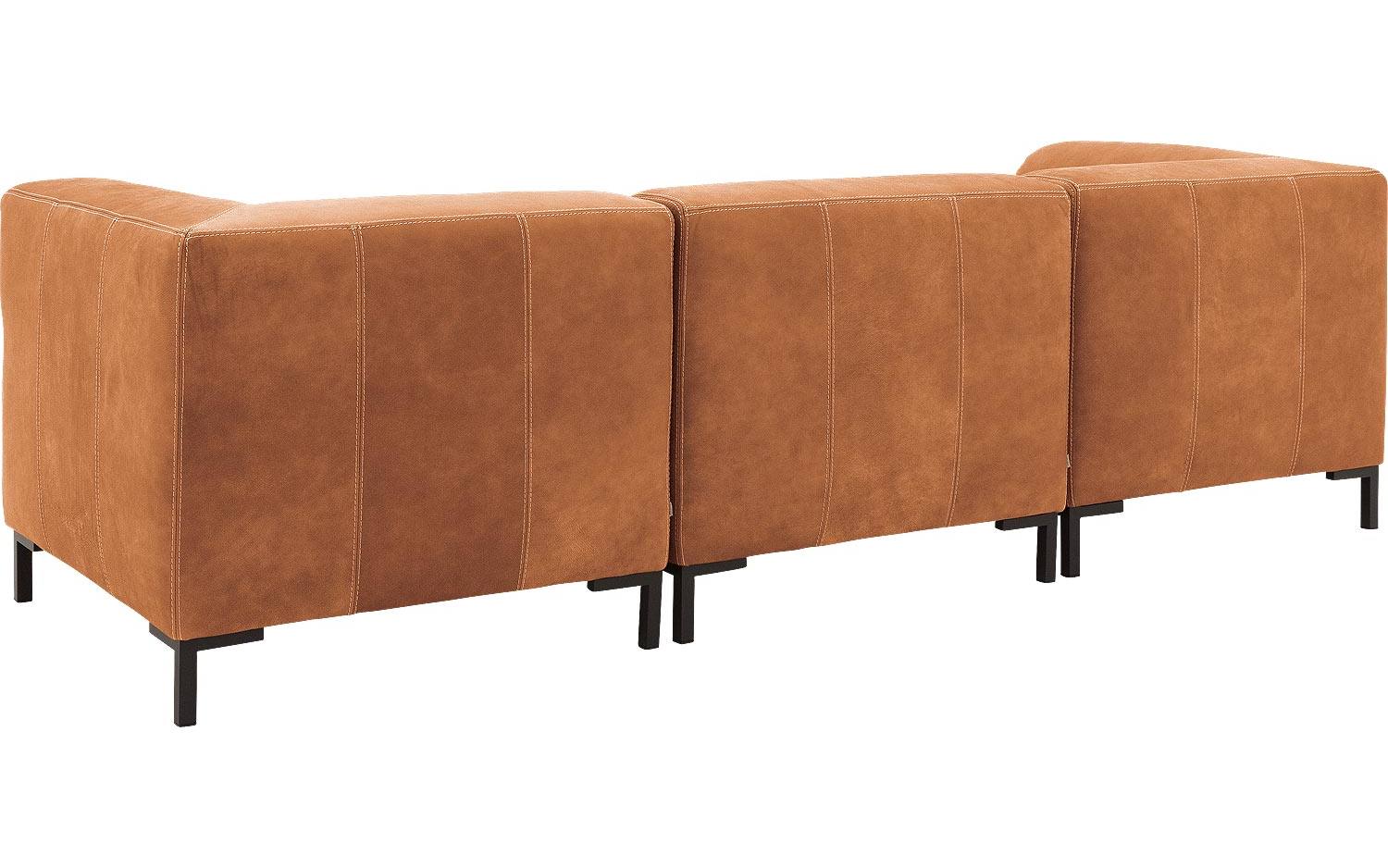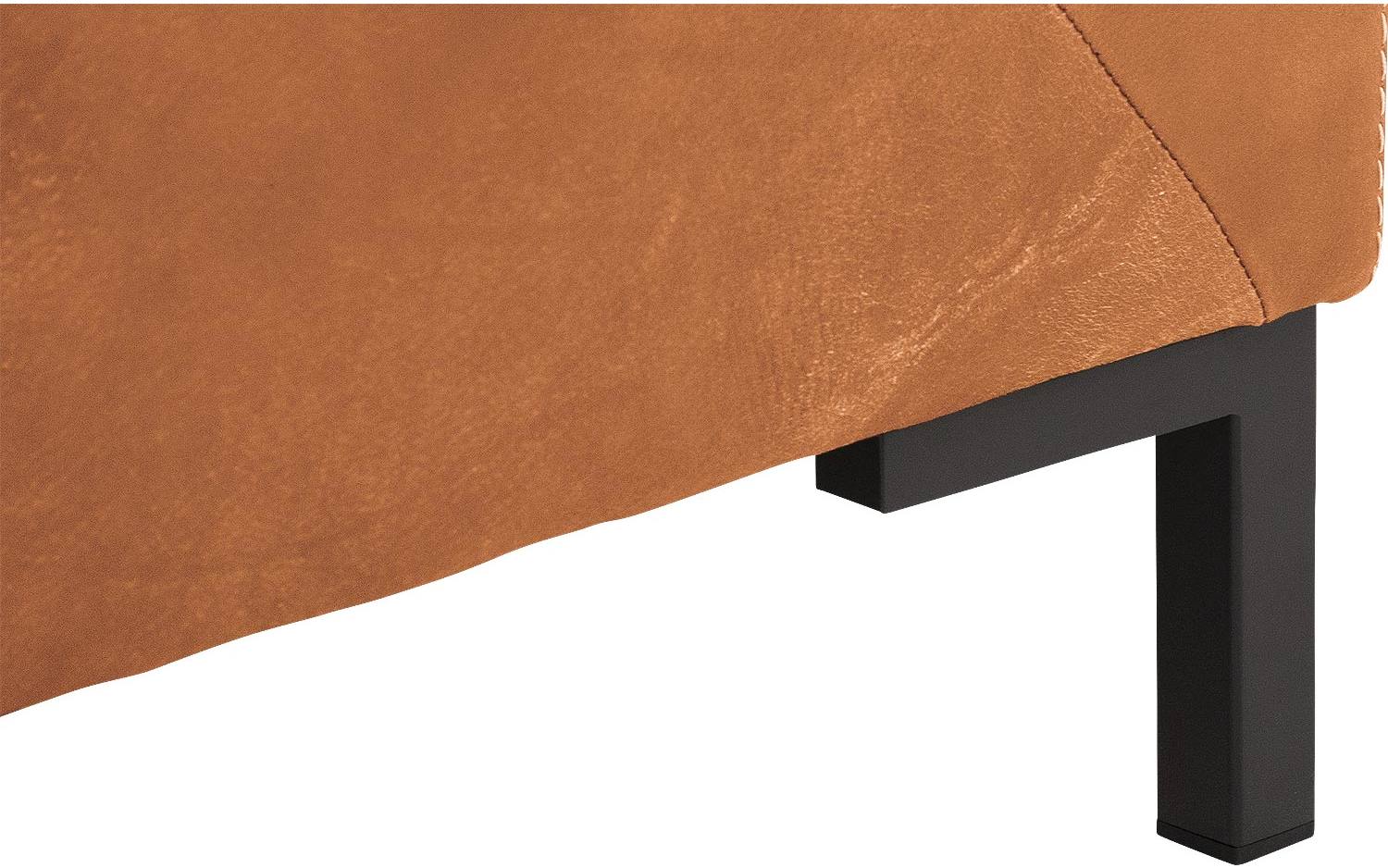 De warme cognac kleur combineert perfect met de strakke zwarte metalen poten. Door de vaste bekleding blijft alles strak op zijn plek en krijgt de bank een moderne uitstraling. Marshall is uniek in zijn soort: je kunt de opstelling steeds opnieuw samenstellen door koppelelementen of een hocker toe te voegen. Zo groeit deze leren hoekbank mee met jouw woonwensen.