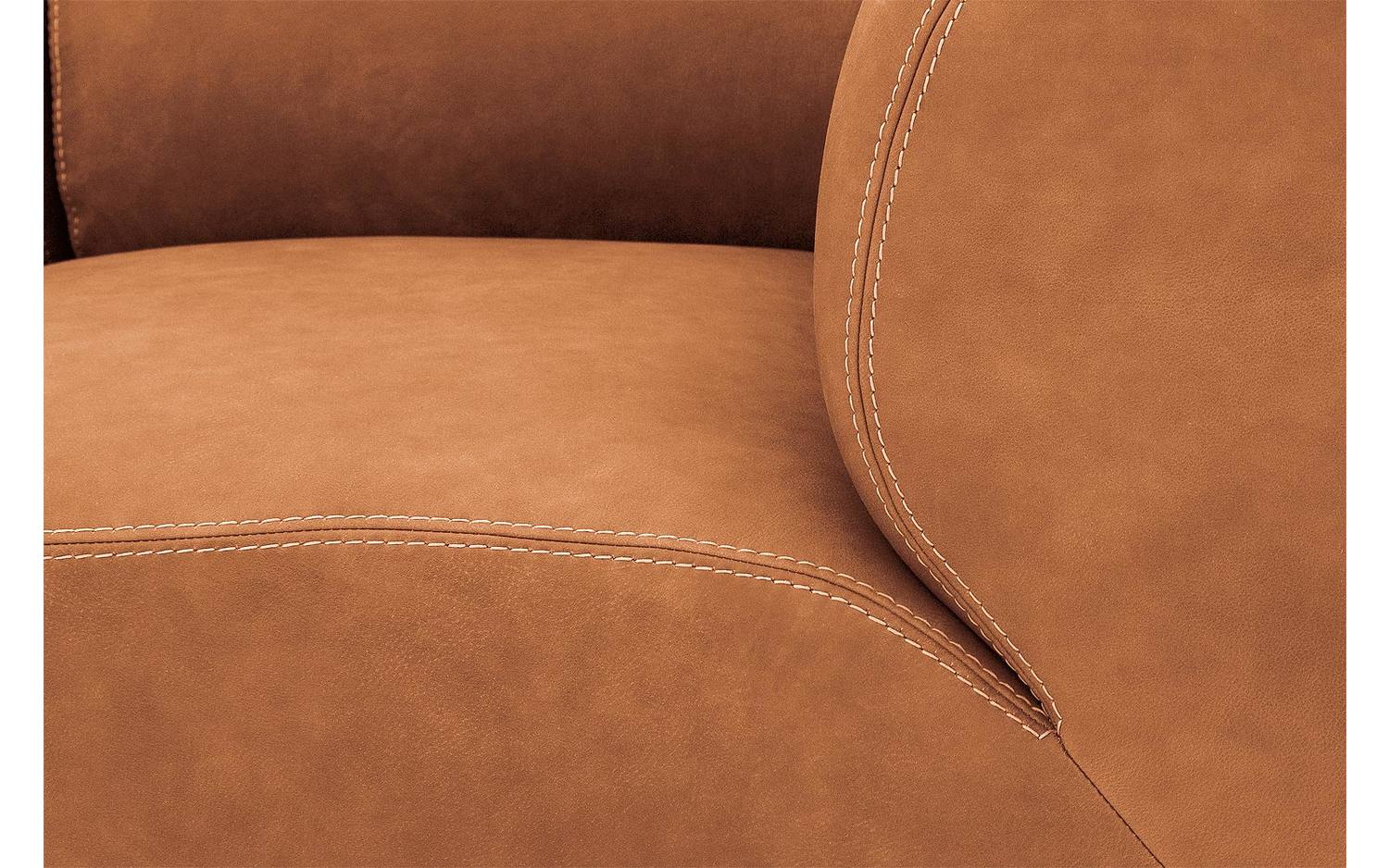 Het buffalo leer heeft een prachtig fijn opgeschuurd uiterlijk met een suède-achtige uitstraling. De grove stiknaden en slanke metalen poten in zwart mat geven Marshall een stoere, urban industriële look. Het leer is nauwelijks gecorrigeerd, waardoor de natuurlijke nerfstructuur mooi zichtbaar blijft.