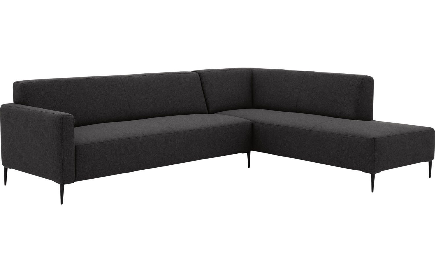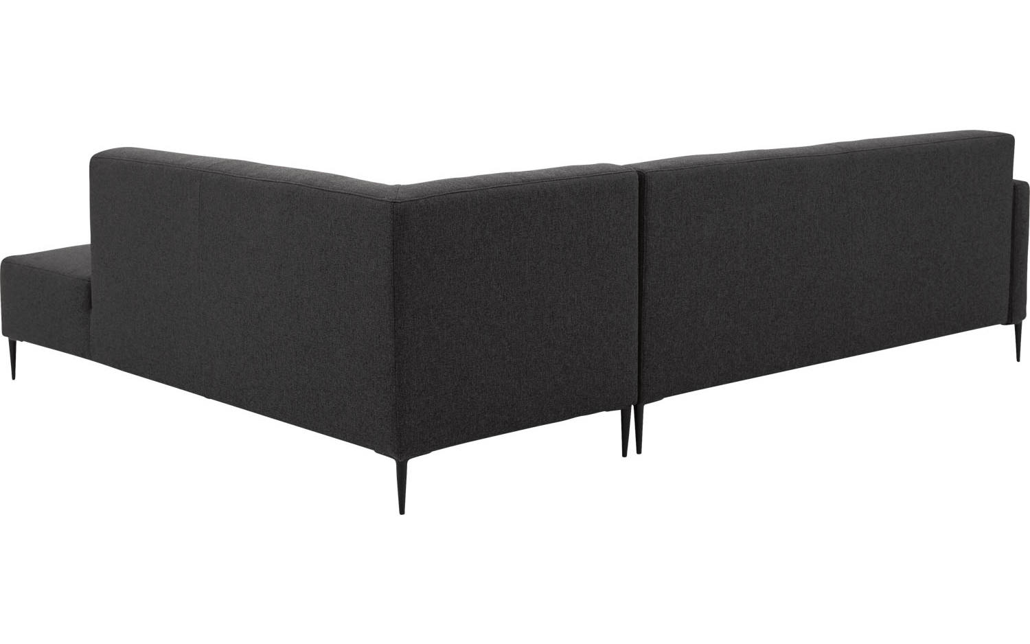 Met zijn strakke lijnen en fijn geweven grijze stoffering heeft Key West een moderne uitstraling die jarenlang mooi blijft. De metalen poten met zwarte poedercoating geven deze hoekbank een stoere en eigentijdse look. Door de hoge poten krijg je een ruimtelijk effect in je woonkamer én kun je de vloer eronder gemakkelijk schoonhouden.