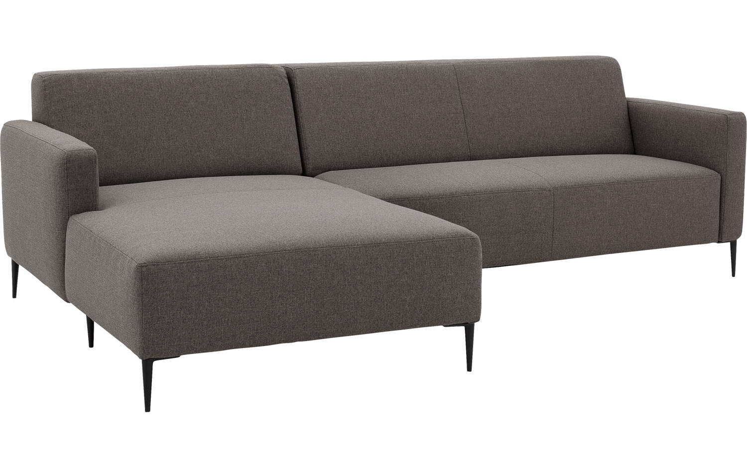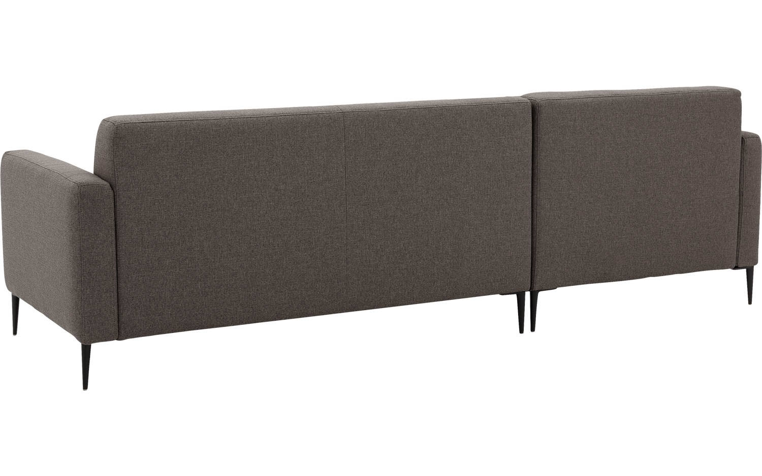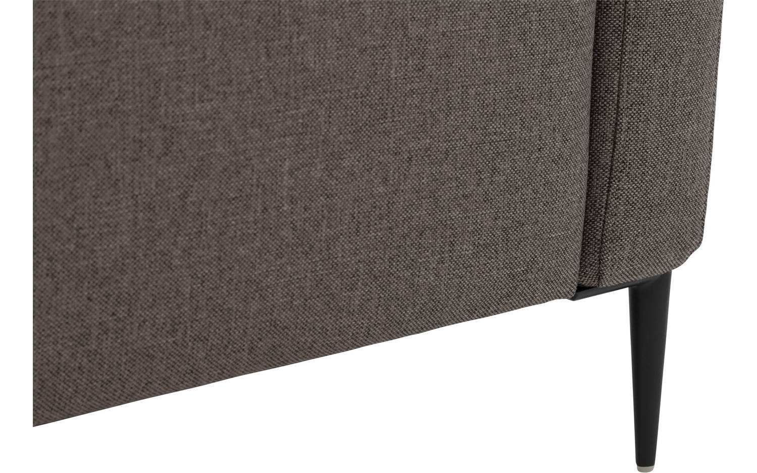 Key West heeft een fijn geweven bruine stoffering die mooi contrasteert met de metalen poten met zwarte poedercoating. De strakke lijnen en het moderne design maken deze hoekbank makkelijk te combineren in verschillende woonstijlen. De hoge poten zorgen voor een ruimtelijk effect in je interieur.