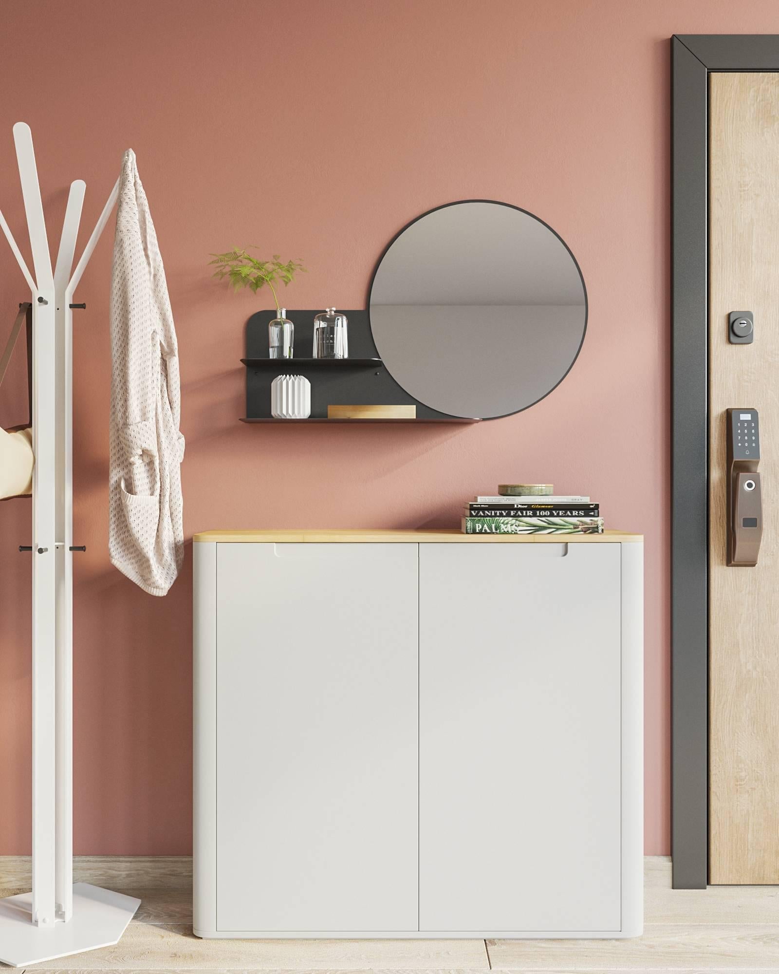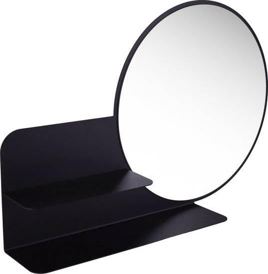 Gorillz Clever Wandspiegel met Plankje - Industriële Spiegel - 85 x 56 cm - Zwart Deze Clever wandspiegel van Gorillz combineert een spiegel met extra opbergruimte. Het stijlvolle metalen frame past bijna in elke woon- of werkruimte. Deze Clever wandspiegel van Gorillz combineert een spiegel met extra opbergruimte. Het stijlvolle metalen frame past bijna in elke woon- of werkruimte. De 2 handige plankjes zijn perfect voor het bewaren van make-up of andere kleine objecten. Met een diameter van 52 cm geeft de ronde spiegel genoeg ruimte om nog even je haar te checken voordat je de deur uitgaat. De set komt inclusief alle benodigde instructies en materialen zoals schroeven en pluggen. De wandspiegel is gemaakt van gerecycled staal en is volledig duurzaam geproduceerd in onze eigen fabriek. Eigenschappen: