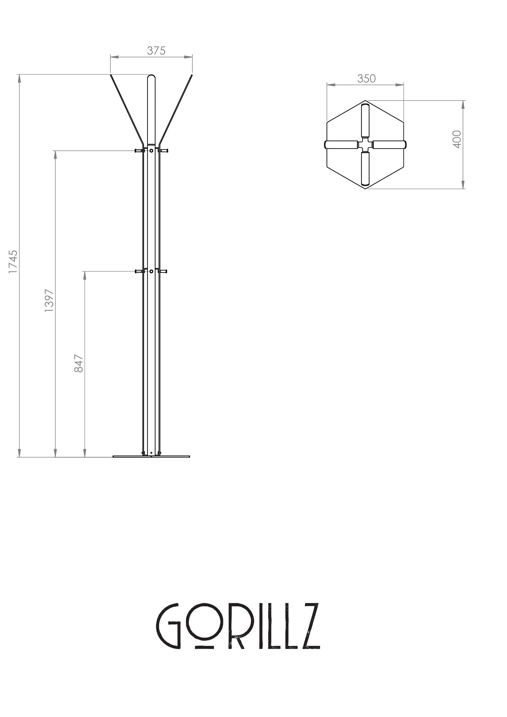 De wandkapstok van Gorillz beschikt over een lengte van 174,5 centimeter, een breedte van 40 centimeter. Met het meegeleverde bevestigingsmateriaal kunt u het gemakkelijk en snel in elkaar zetten. Hierdoor kunt u binnen enkele minuten uw jassen en tassen ophangen en genieten van de bijzondere uitstraling van deze stijlvolle staande kapstok!