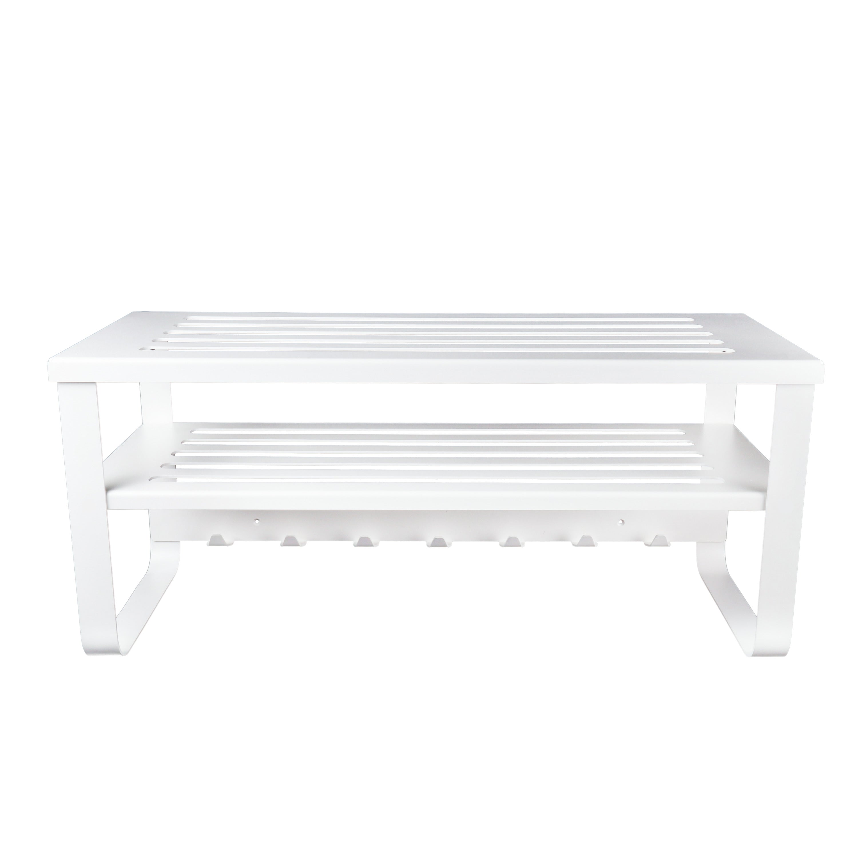 Met 7 haken kunnen voldoende jassen worden opgehangen aan deze kapstok. Naast jassen is er ook nog ruimte voor overige spullen. Gebruik hiervoor de twee planken boven de haakjes. De hoogste plank is geschikt voor hoofddeksels en de onderste plank is perfect voor handschoenen en overige spullen. Zo heb je alles bij de hand en dicht bij elkaar. Je bespaart op deze manier veel ruimte.
