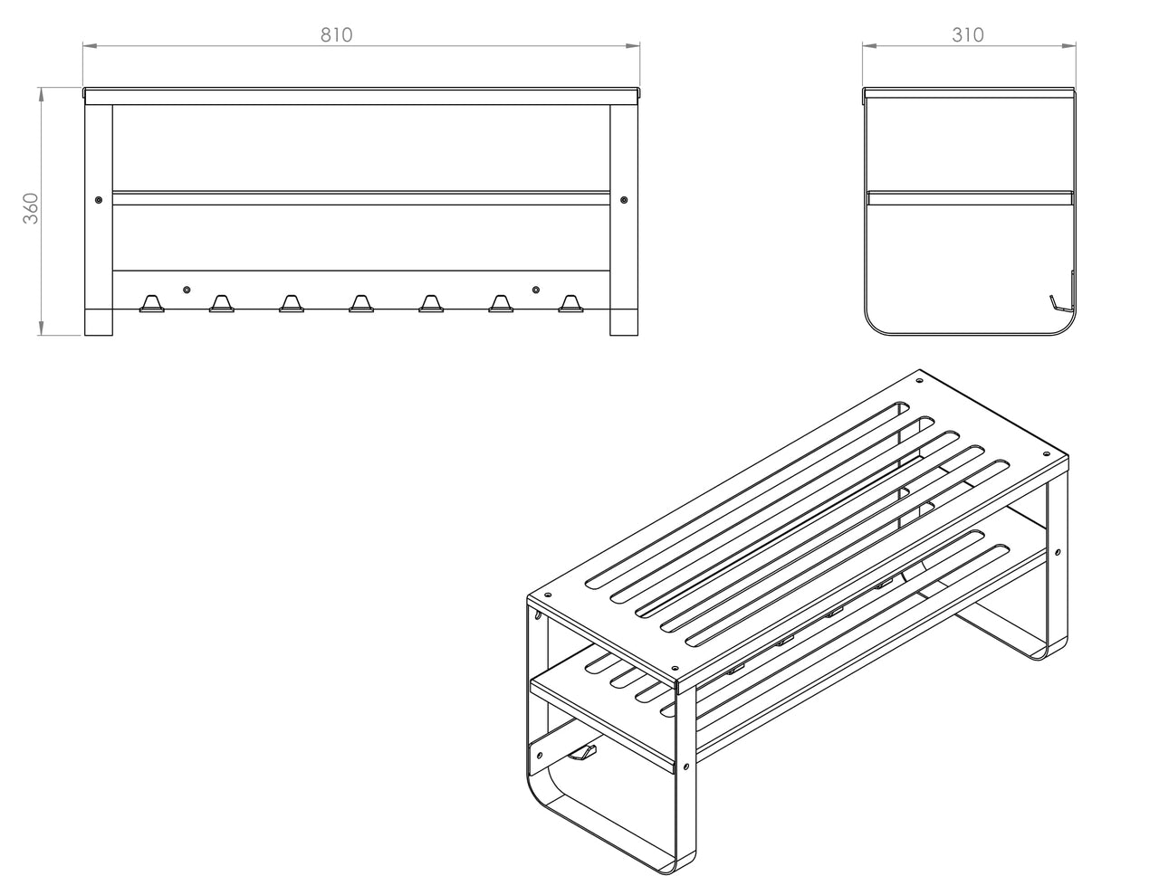 - Afmetingen (Lengte x Breedte x Hoogte): 810 x 310 x 360 mm