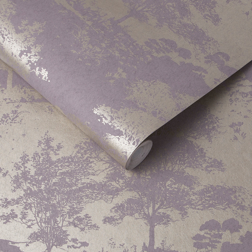 Een elegante kijk op een adembenemend landschap. Meadow Bluebell combineert delicate paarse en mauve tinten met zachte gouden metallics op een weelderig getextuurd papier. Ontleend uit het Graham & Brown-archief, haalt dit ontwerp inspiratie uit boslandschappen en de steeds wisselende seizoenen.