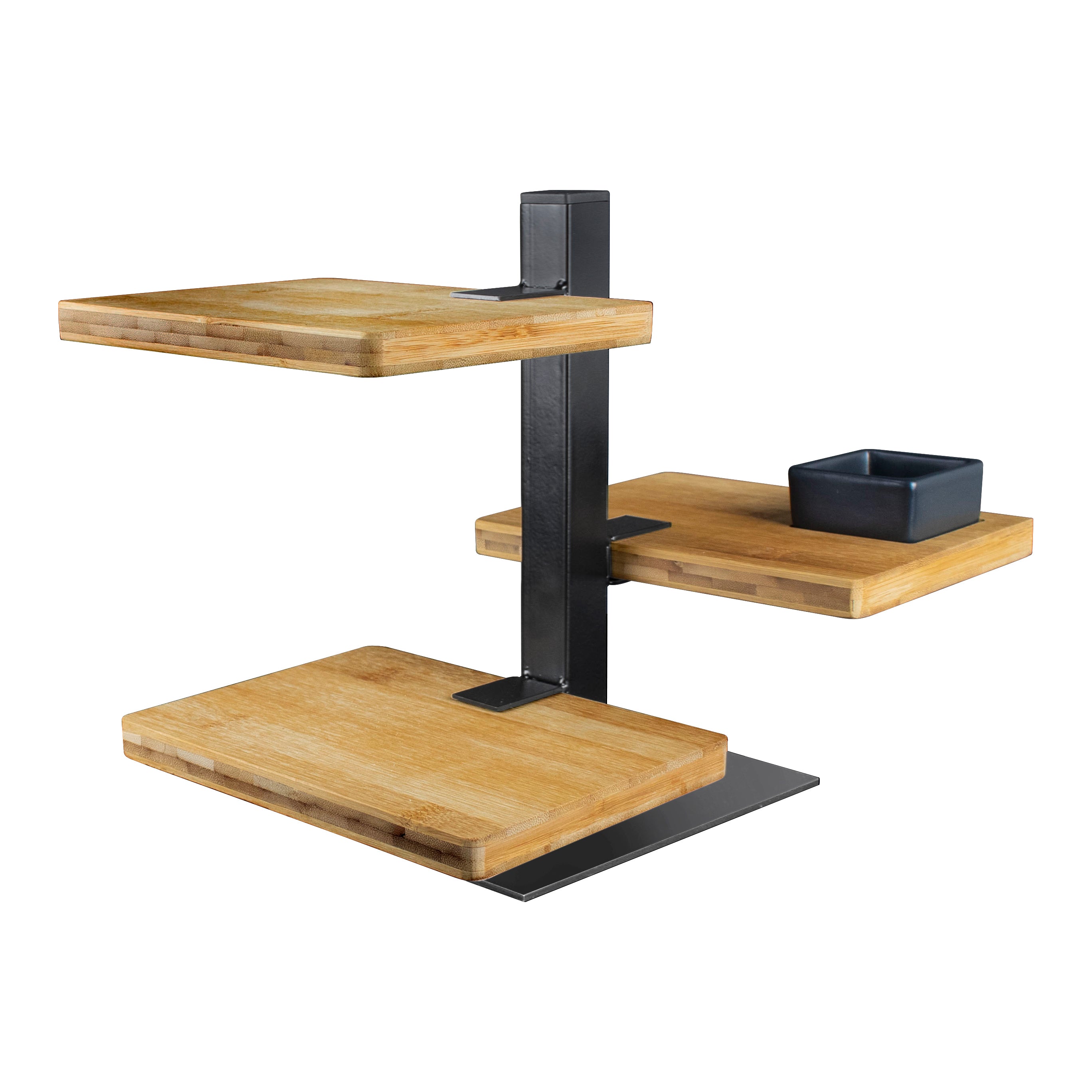 - Deze elegante etagère heeft drie bamboeplanken