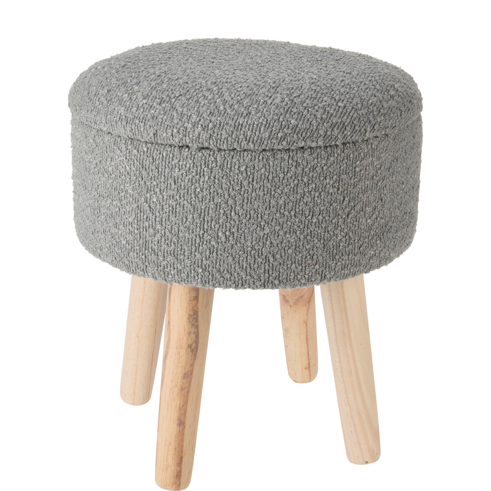 H&S Collection Opbergkruk - hout - teddy stof - lichtgrijs - D29 x
