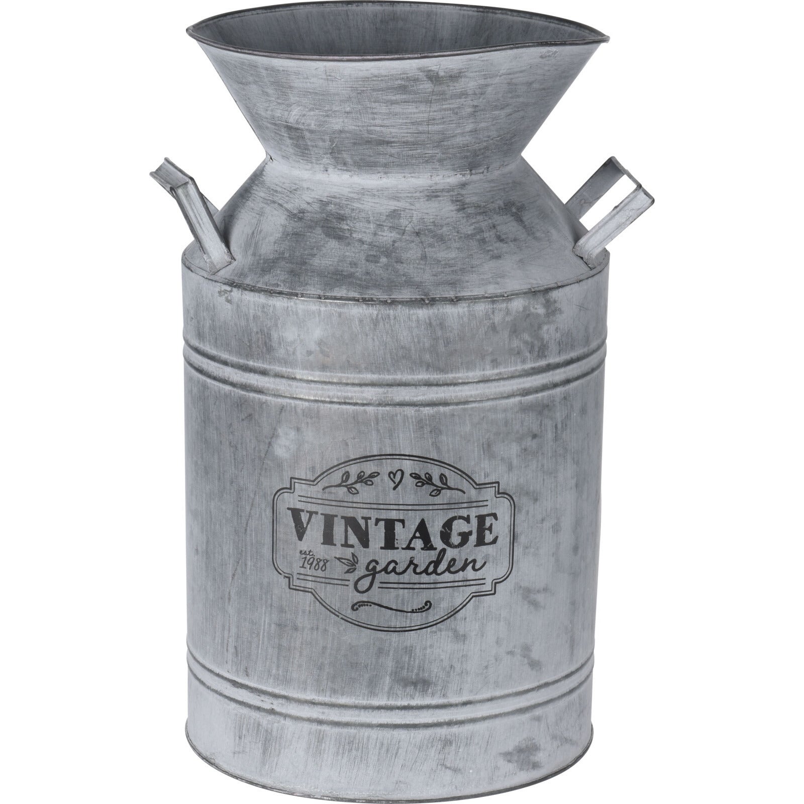 H&S Collection Vaas, melkbus model. Deze decoratieve zinken melkbus vaas/container heeft een formaat van ca. 21 x 37 cm en is geschikt voor droogbloemen/takken/kunstbloemen of als decoratie.