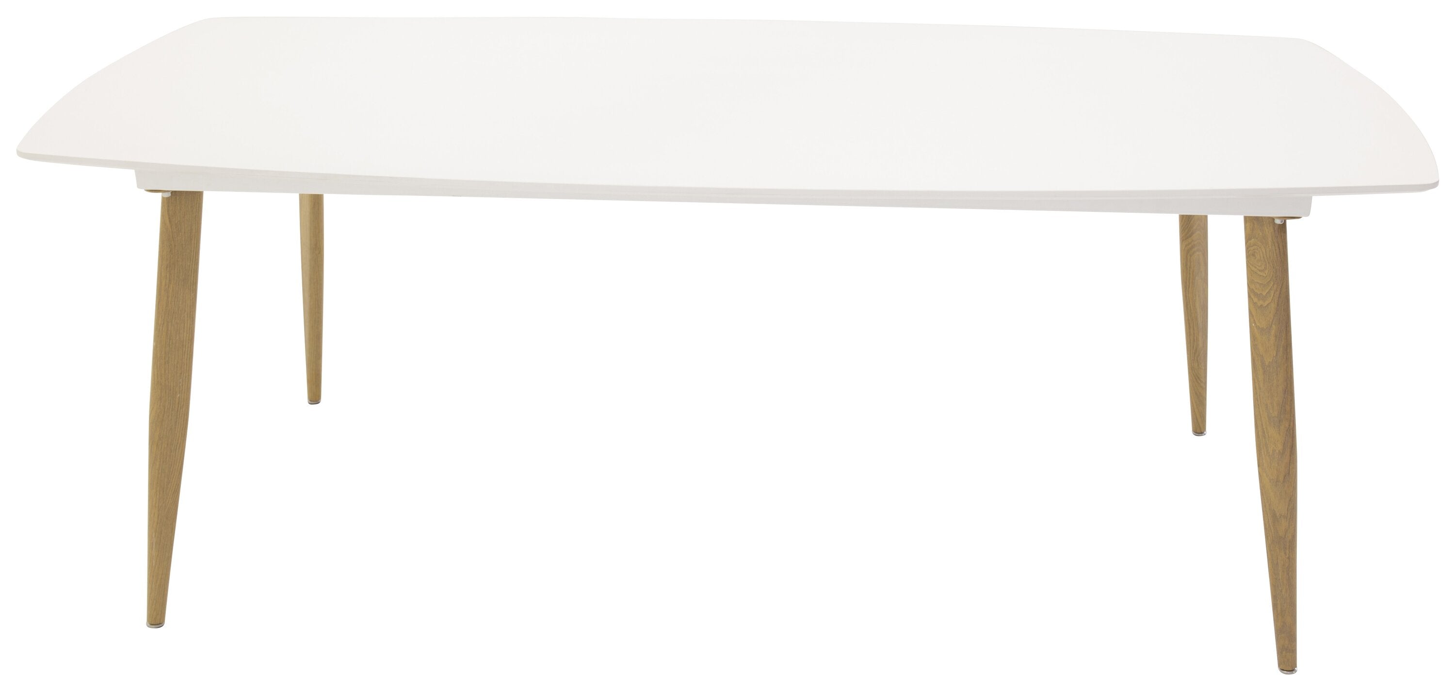 Een stijlvolle rechthoekige eettafel in alle eenvoud uit de Hakaro-serie. Hier wordt een klassieke uitstraling gecombineerd met tijdloze kleuren, met een tafelblad van wit MDF en tafelpoten van metaal met een eiken kleur afwerking. Het Scandinavische ontwerp met moderne uitlopende poten en luchtige vorm maakt het gemakkelijk te combineren met andere decoraties. Creëer een aangenaam middelpunt om met je familie omheen te verzamelen!