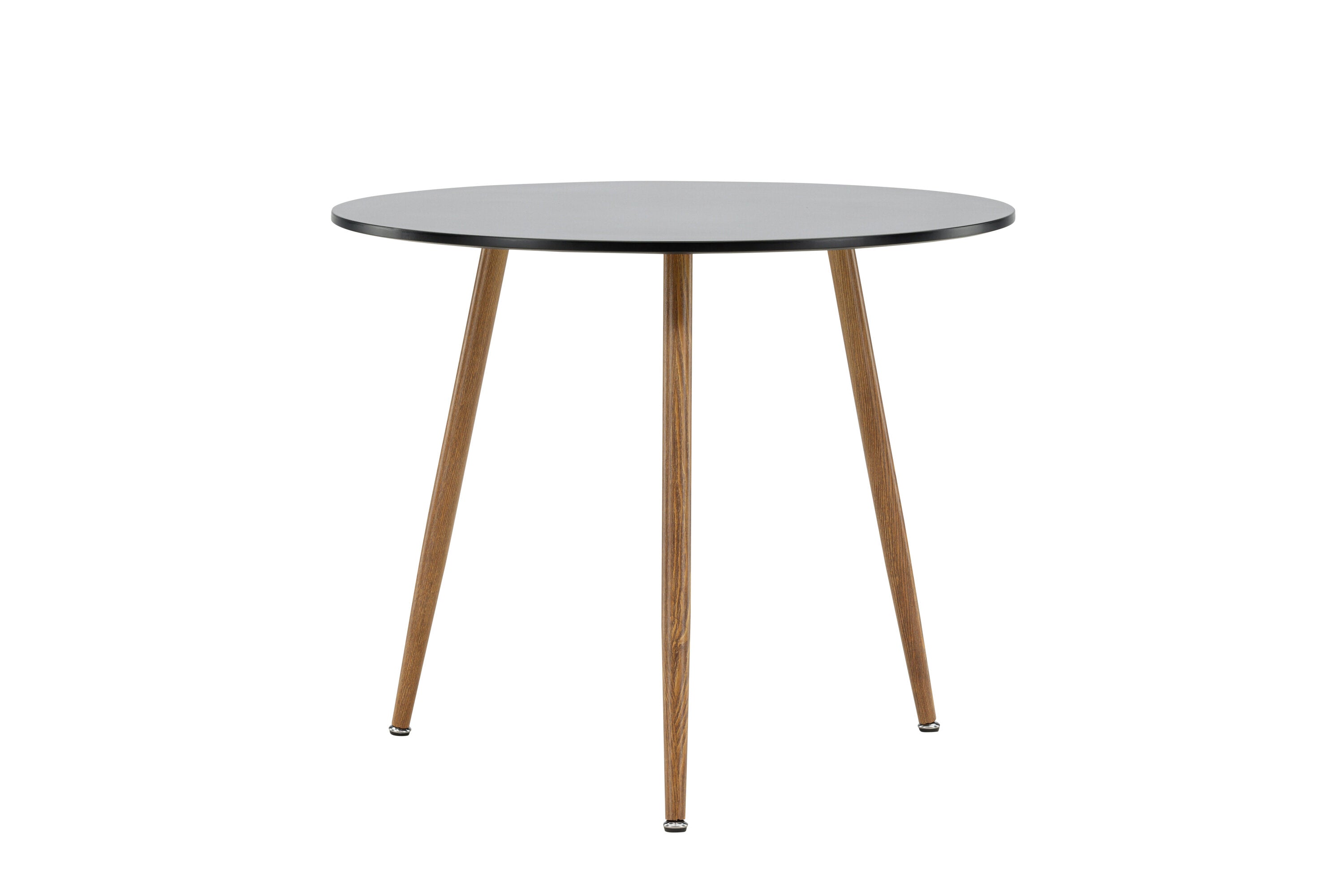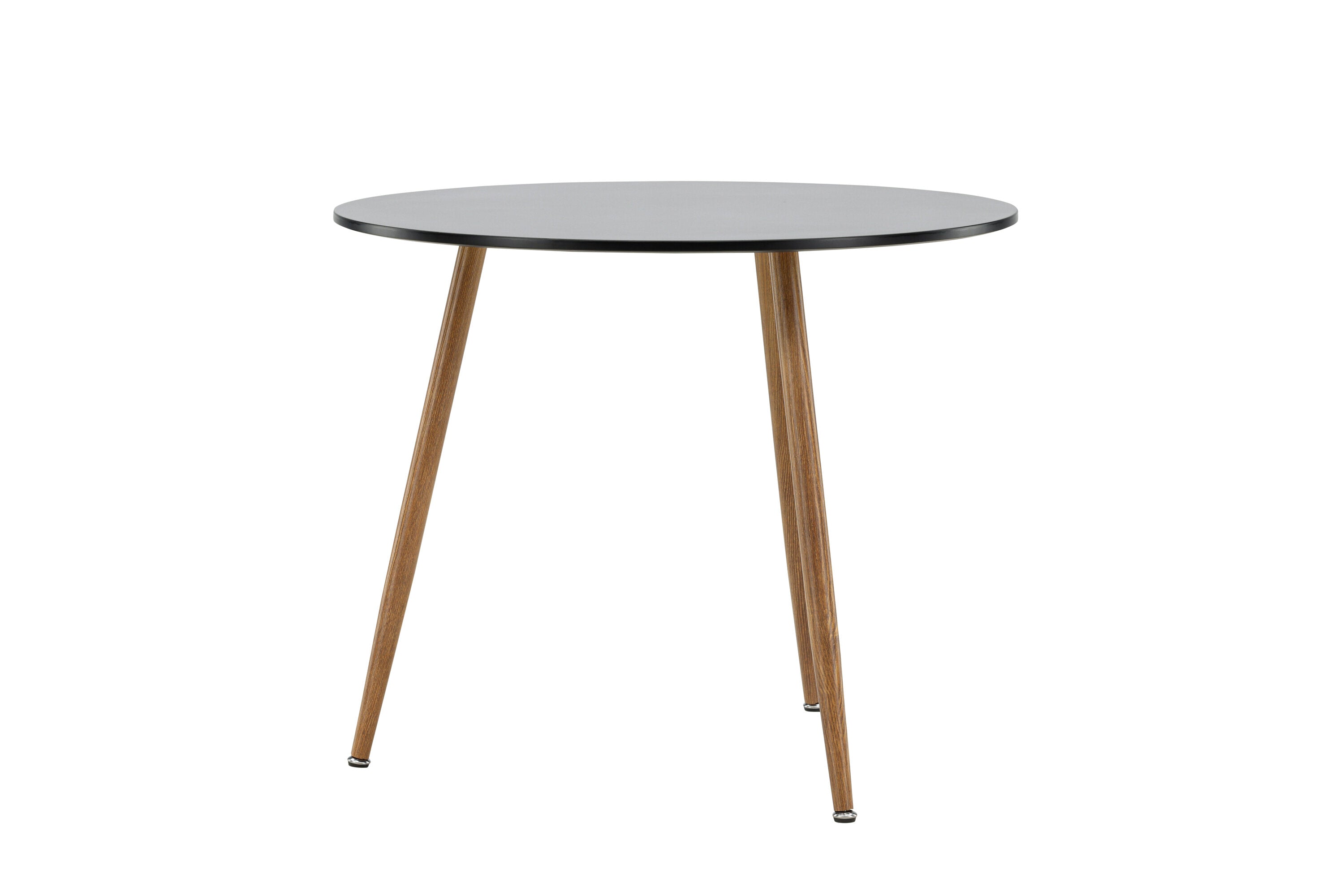 Creëer een charmant middelpunt waar jij en je familie omheen kunnen verzamelen! Onze ronde eettafel uit de Hakaro-serie heeft een stijlvol tafelblad van zwart MDF en licht uitlopende tafelpoten met een donkere eiken uitstraling. De kleuren van de tafel geven een moderne en luxe sfeer aan de kamer. Richt je keuken of woonkamer slim en netjes in en geniet van gezellige maaltijden waar niemand aan de rand belandt!