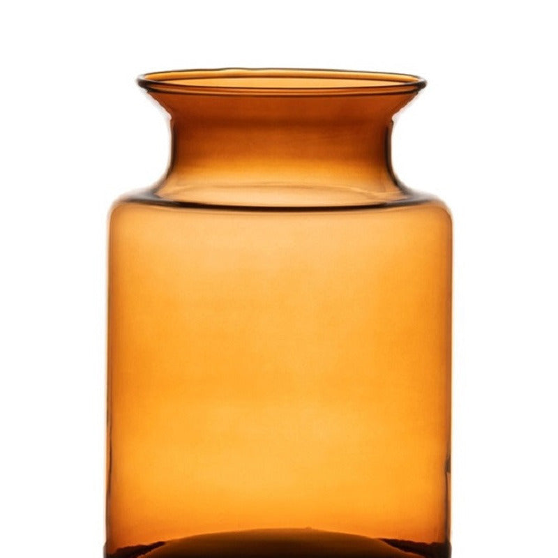 Stijlvolle melkbus bloemen vaas/vazen van glas, in de kleur amber. Geschikt om een boeket of losse bloemen in te plaatsen, maar ook leuk met seizoensgebonden decoraties. Formaat: D14 x H20. Materiaal: transparant stevige kwaliteit glas.