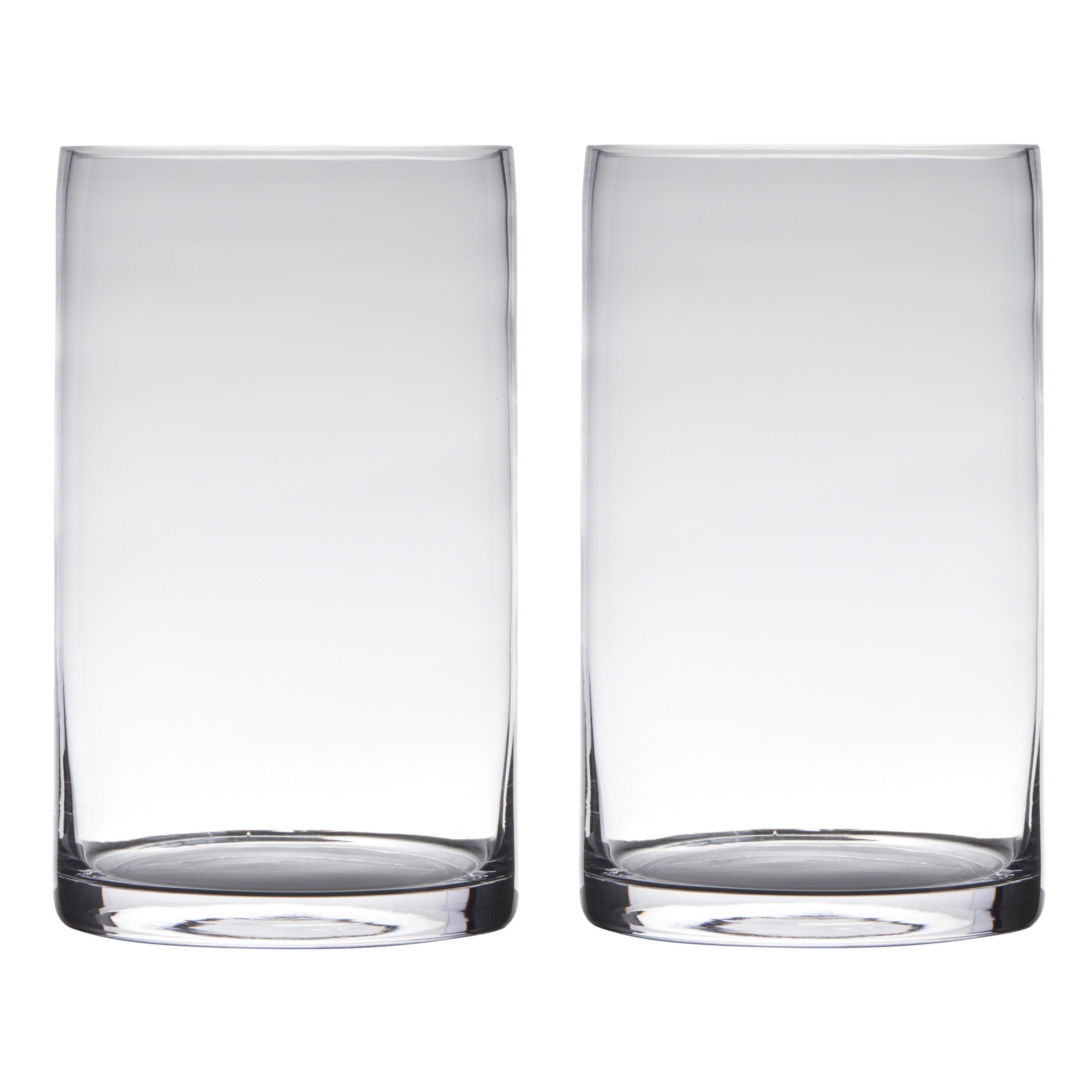 Transparante home-basics cilinder vorm bloemen vaas/vazen van glas. Geschikt om een boeket, takken of losse bloemen in te plaatsen. Formaat per vaas: hoogte 25 cm, diameter 15 cm. Materiaal: transparant dik glas met zware bodem.