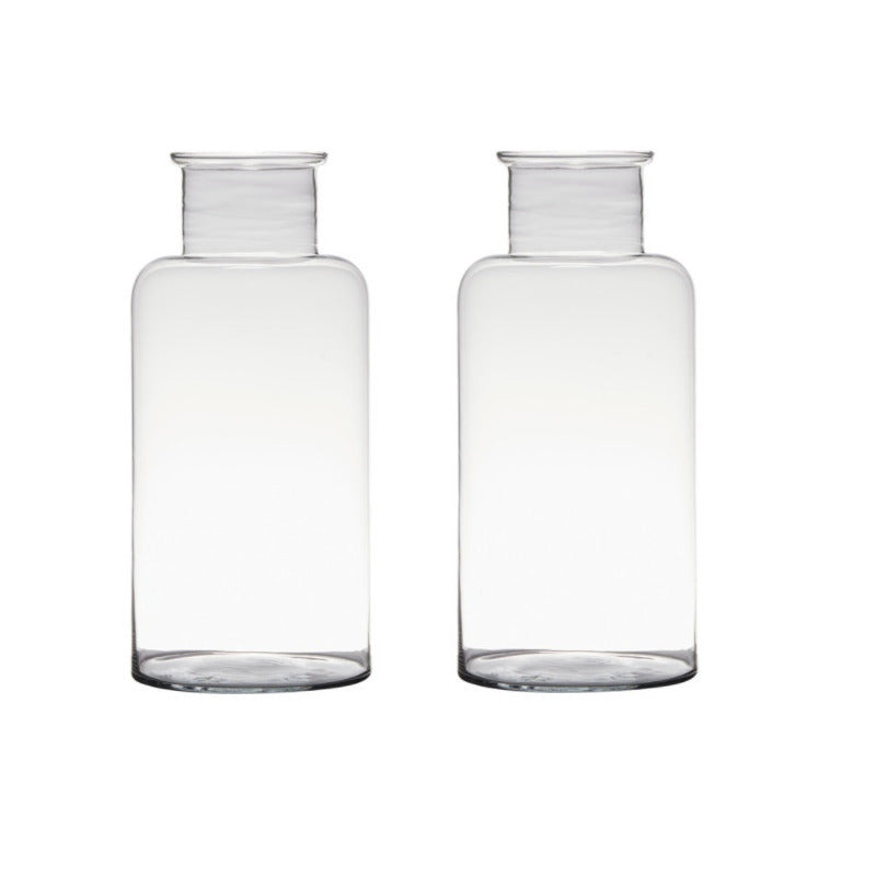Transparante home-basics bloemen vaas/vazen van glas. Geschikt om een boeket, takken of losse bloemen in te plaatsen. Formaat per vaas: hoogte 35 cm, diameter 16 cm. Materiaal: transparant glas.