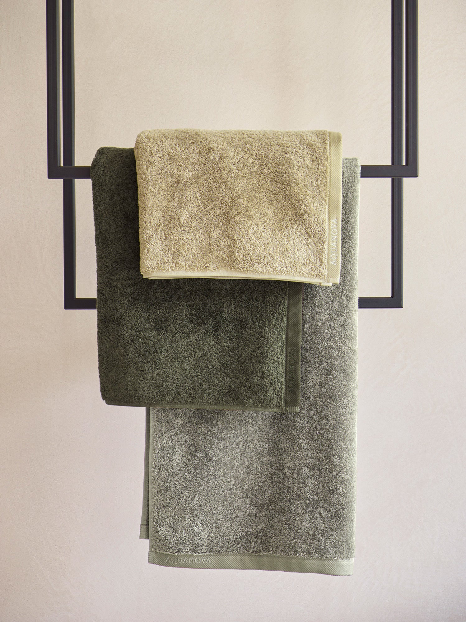 Met het London badtextiel van Aquanova kies je voor luxe! Heerlijk zachte handdoeken in een volle kwaliteit van wel 600 gram/m². Met dubbel gestikte zijnaden en een mooie afwerkrand aan de korte zijde is deze handdoek hoogwaardig afgewerkt. Aan de lange zijde is een extra lusje bevestigd, handig om de handdoek of washand op te hangen aan een haakje! London handdoeken, set van 3 Artikelnummer: LONTWS-128 (set/3) Maat: 55x100 cm Kleur Absynth (groen / grijsgroen / zacht groen) Materiaalinformatie 100% Egyptisch katoen (gekamd) 600 gr/m² * Dubbel gestikte zijnaad * Extra lusje op de lange zijde * Brede afwerkrand aan korte zijde Wasvoorschriften Wassen op 40 of 60 graden (met gelijke kleuren) Geschikt voor de droger (lage stand)