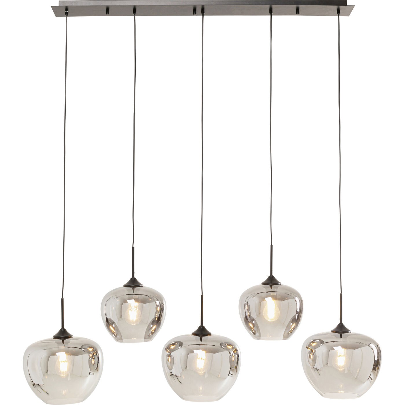 - Vijf exclusieve gegalvaniseerde glazen kappen creëren een harmonieus ontwerp en verspreiden een aangenaam licht,