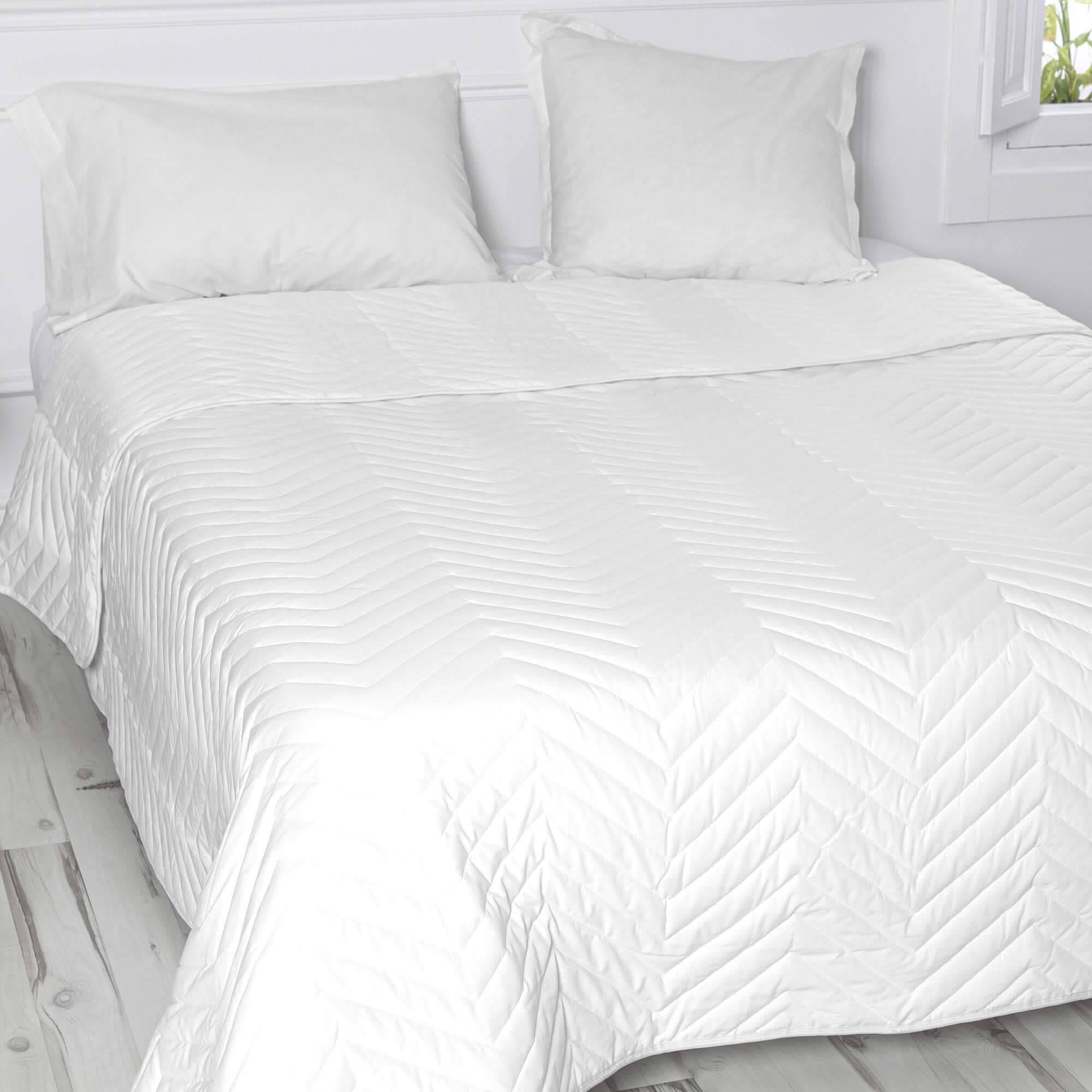 Je voelt je in de wolken als je bedekt bent met het BASIC Arista witte dekbed, dat de helderheid van de kleur, de zachtheid van het materiaal en het klassieke visgraatmotief combineert om je de beste nachtrust te geven. Deze gewatteerde sprei van 100% katoen, perfect voor de tussenseizoenen, heeft een draadtelling van 150, wat zorgt voor een licht en zacht gevoel dat je helpt om in een diepe slaap te vallen.