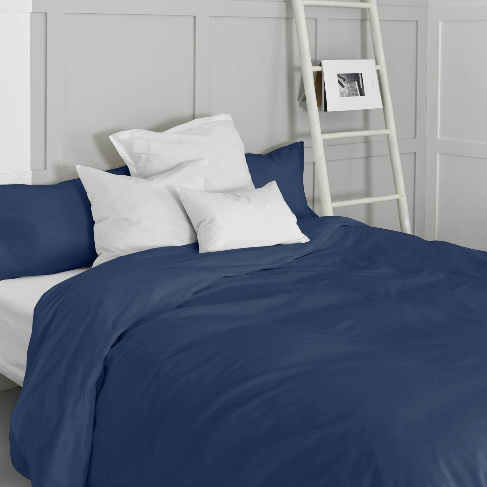 Met het Navy dekbedovertrek van BASIC voel je je meteen veilig en rustig in je slaapkamer dankzij de veelzijdige, neutrale en geraffineerde middernachtkleur - elegantie in haar eenvoudigste en puurste tint! Dit comfortabele, zachte en duurzame product is gemaakt in Spanje van 100% katoen met 150 draden. Handige plastic drukknopen maken het gemakkelijk om de hoezen op wasdag te verwisselen. Kussensloop en hoeslaken niet inbegrepen.