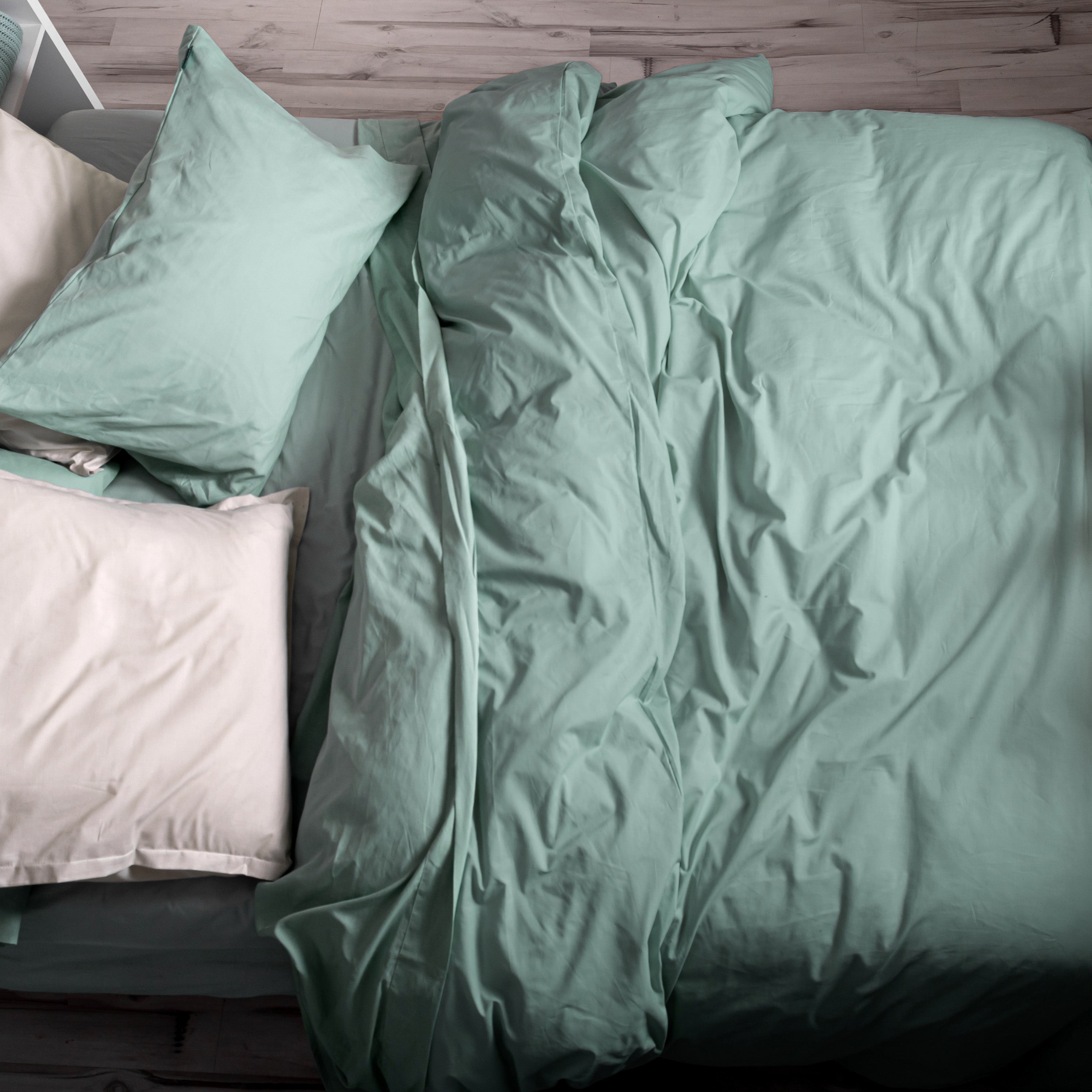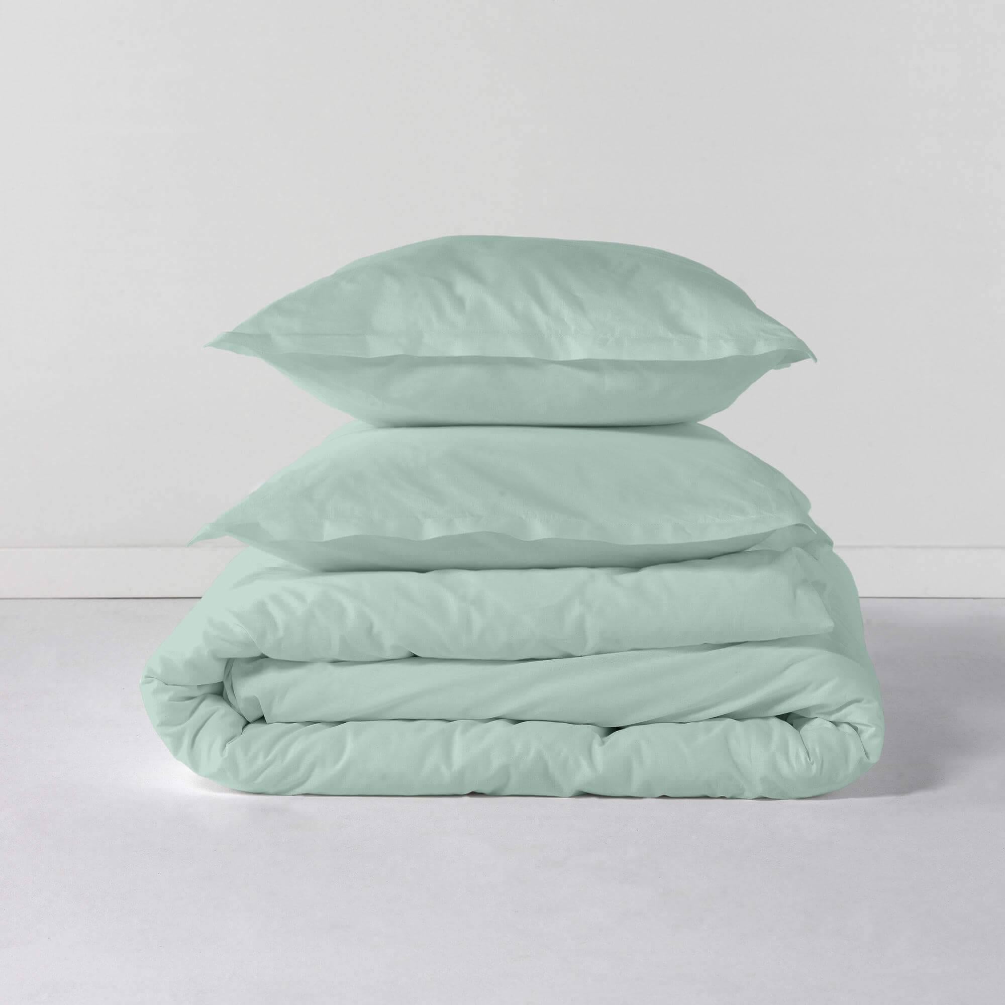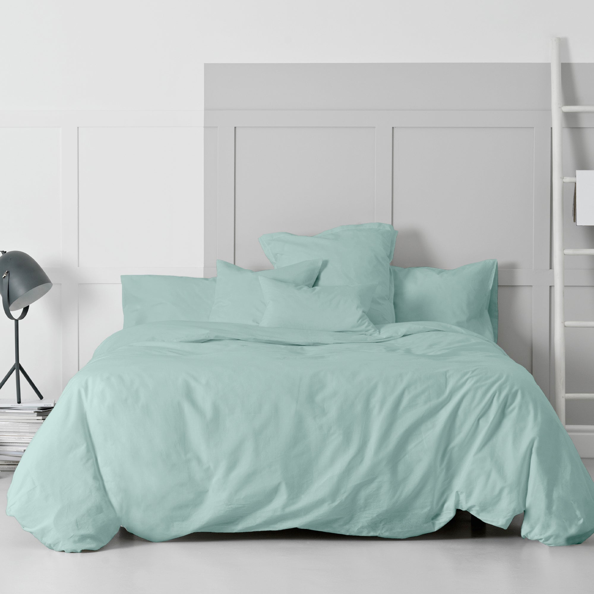 De rustgevende kleur van het BASIC Mint dekbedovertrek zal je slaapkamer opfrissen en tegelijkertijd zachtheid en elegantie toevoegen. Als je op zoek bent naar tijdloos en geraffineerd beddengoed, dan heb je het gevonden! Dit 100% katoenen product met 150 thread count is comfortabel en gemakkelijk te verwisselen dankzij de plastic drukknopen. Het voelt bovendien zacht, licht en comfortabel aan. Kussensloop en hoeslaken niet inbegrepen.