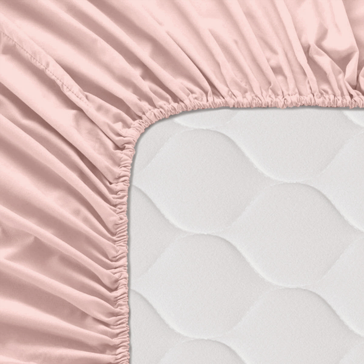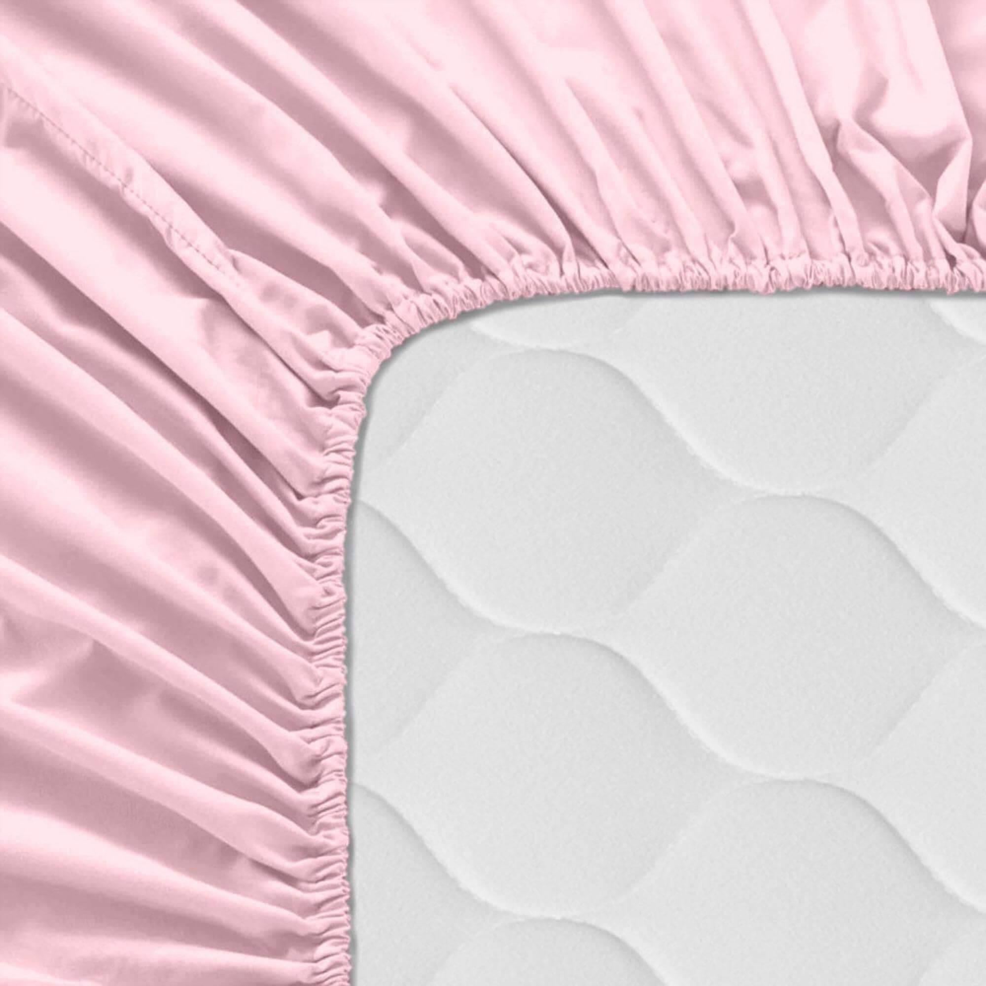Lichtroze hoeslaken 100% katoen 150 thread count. De hoeken zijn verstelbaar met elastiek.