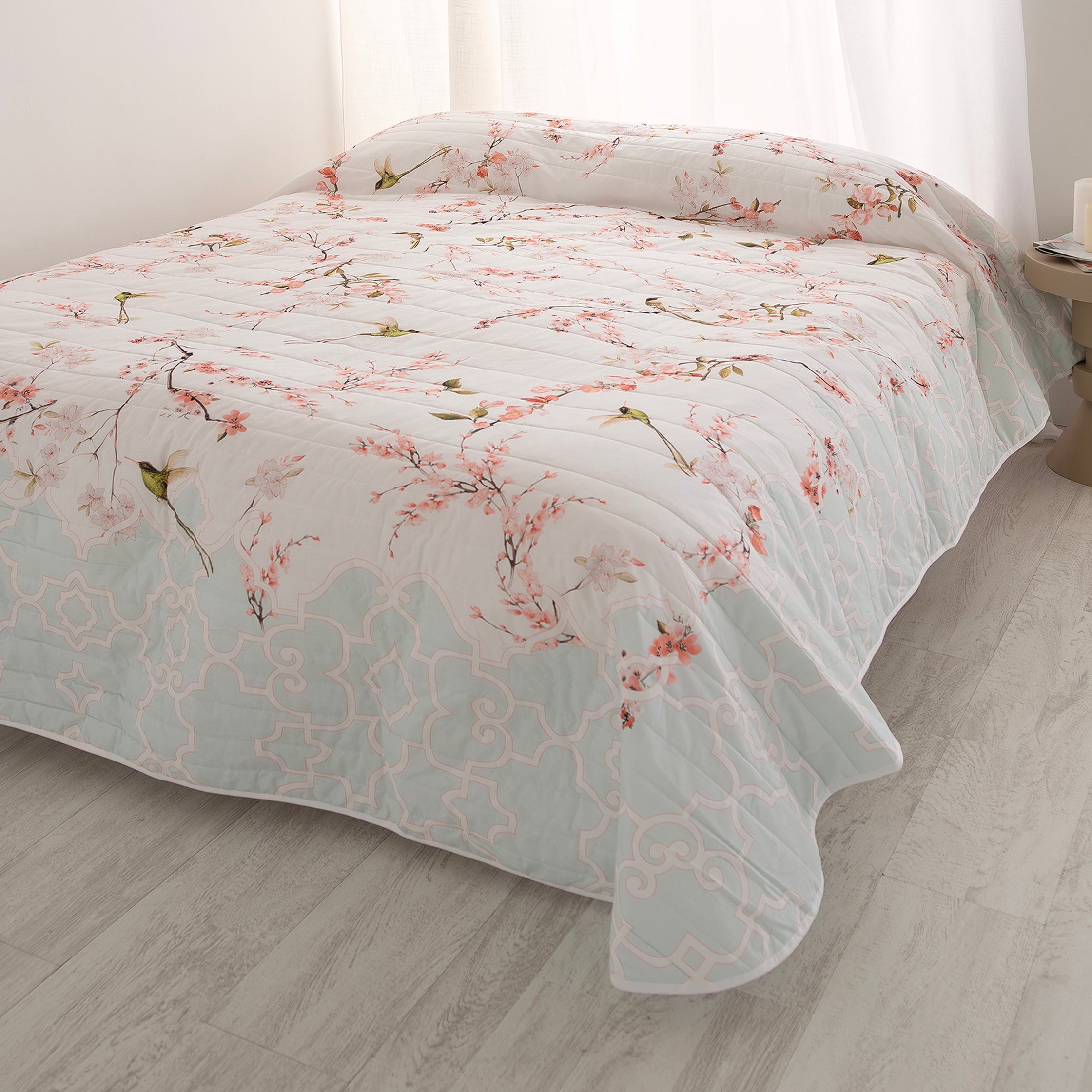 Quilt bedrukt met high definition digitale print en zachte afwerking. Gewatteerd in strepen. Voor- en achterkant 100% katoen. De achterkant is effen wit en is gemaakt met een gecoördineerde biaisband. Ideaal voor tussen de seizoenen. Gemaakt in Spanje. Combineer het met andere items in je gezin!