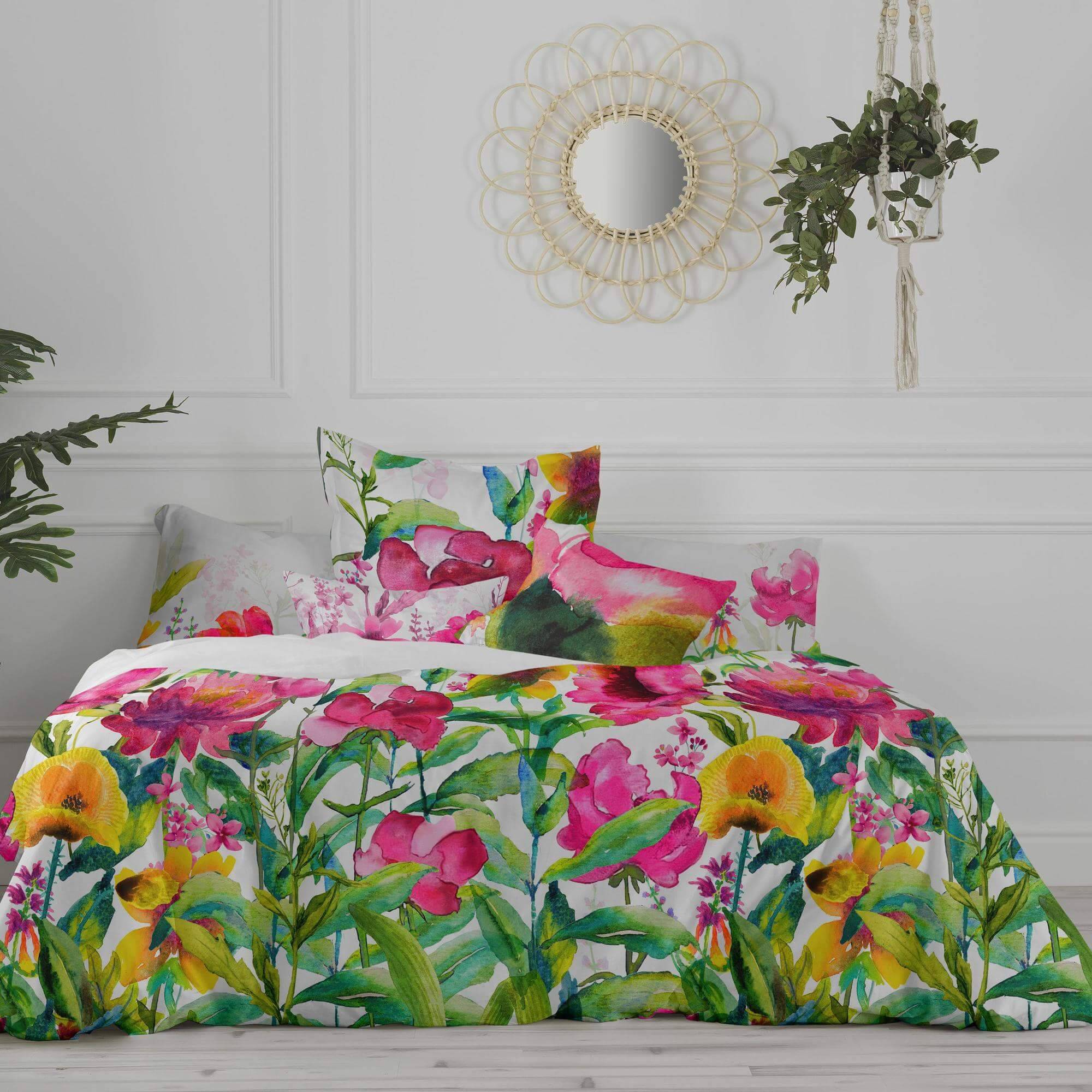 Breng een uitbarsting van kleur in je slaapkamer met het Cassia dekbedovertrek uit de Happyfriday collectie. De bloeiende lagen van groene, roze en gele waterverfkleuren brengen een frisse wind in elke kamer. Dankzij high definition digitaal printen behoudt dit zachte dekbedovertrek van 100% katoen dezelfde levendige kleuren als op de eerste dag. Met liefde gemaakt in Spanje. Kussensloop en hoeslaken niet inbegrepen.