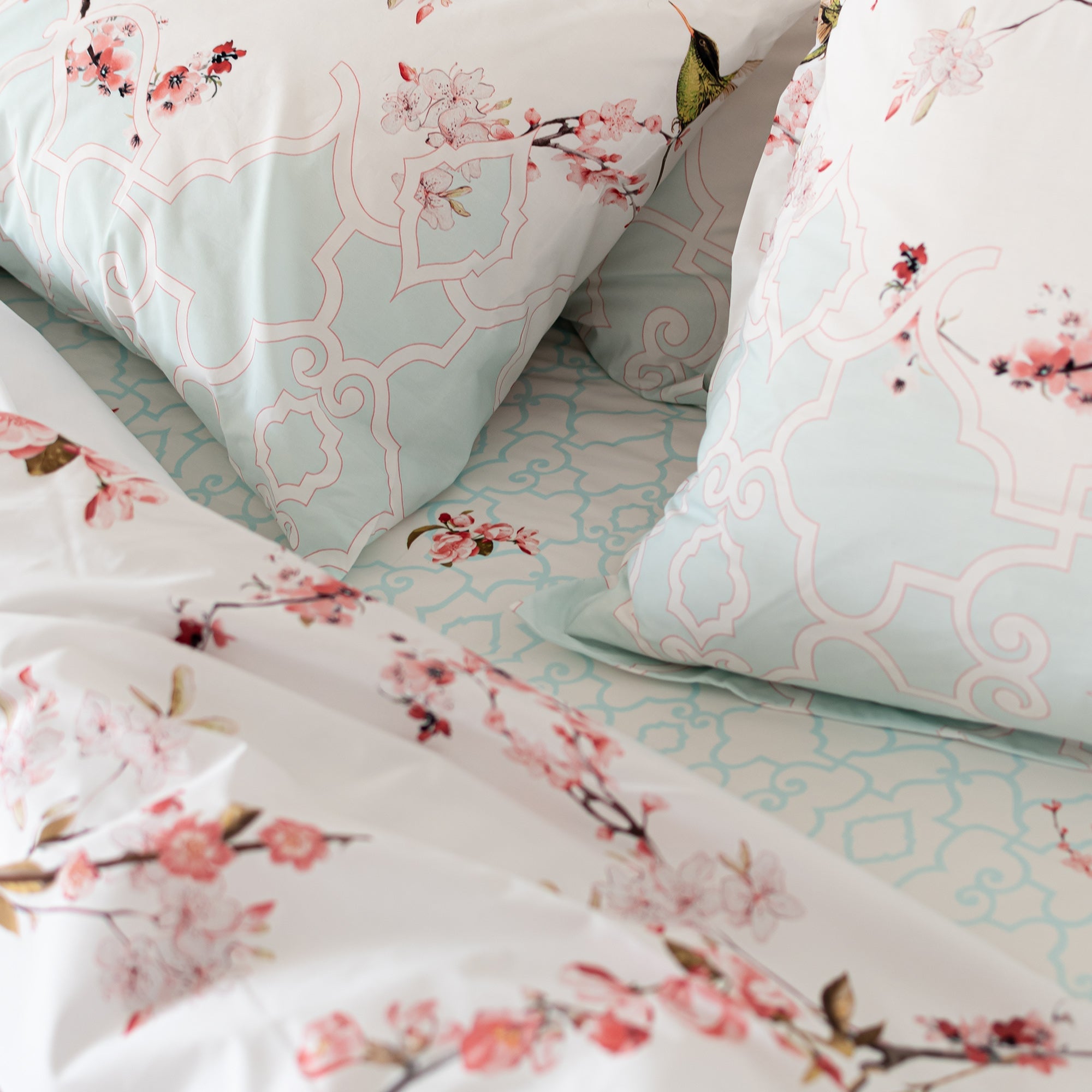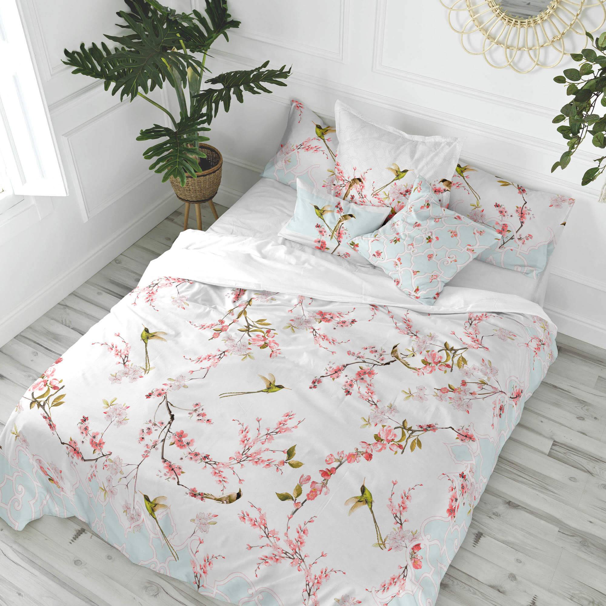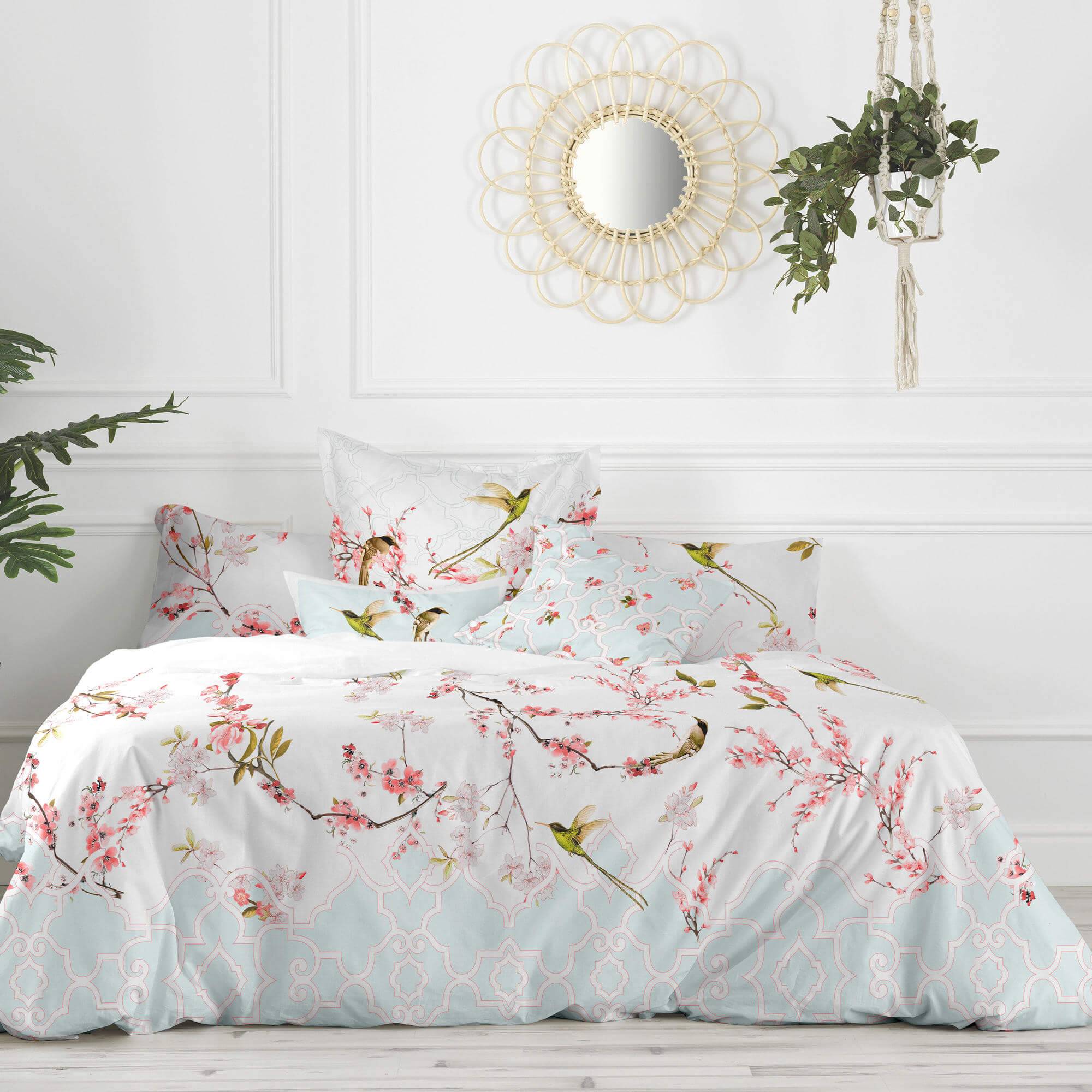 Laat de prachtige roze kersenbloesems en vrolijke vogels van het Sakura dekbedovertrek van Happyfriday je slaapkamer omtoveren tot een Japans geïnspireerd lentebloesemparadijs. De stijlvolle kleuren gedrukt op 100% katoen blijven consistent dankzij de high definition digitale print, en de verborgen knopen geven een stijlvolle afwerking aan de hele look. Kussensloop en hoeslaken niet inbegrepen.