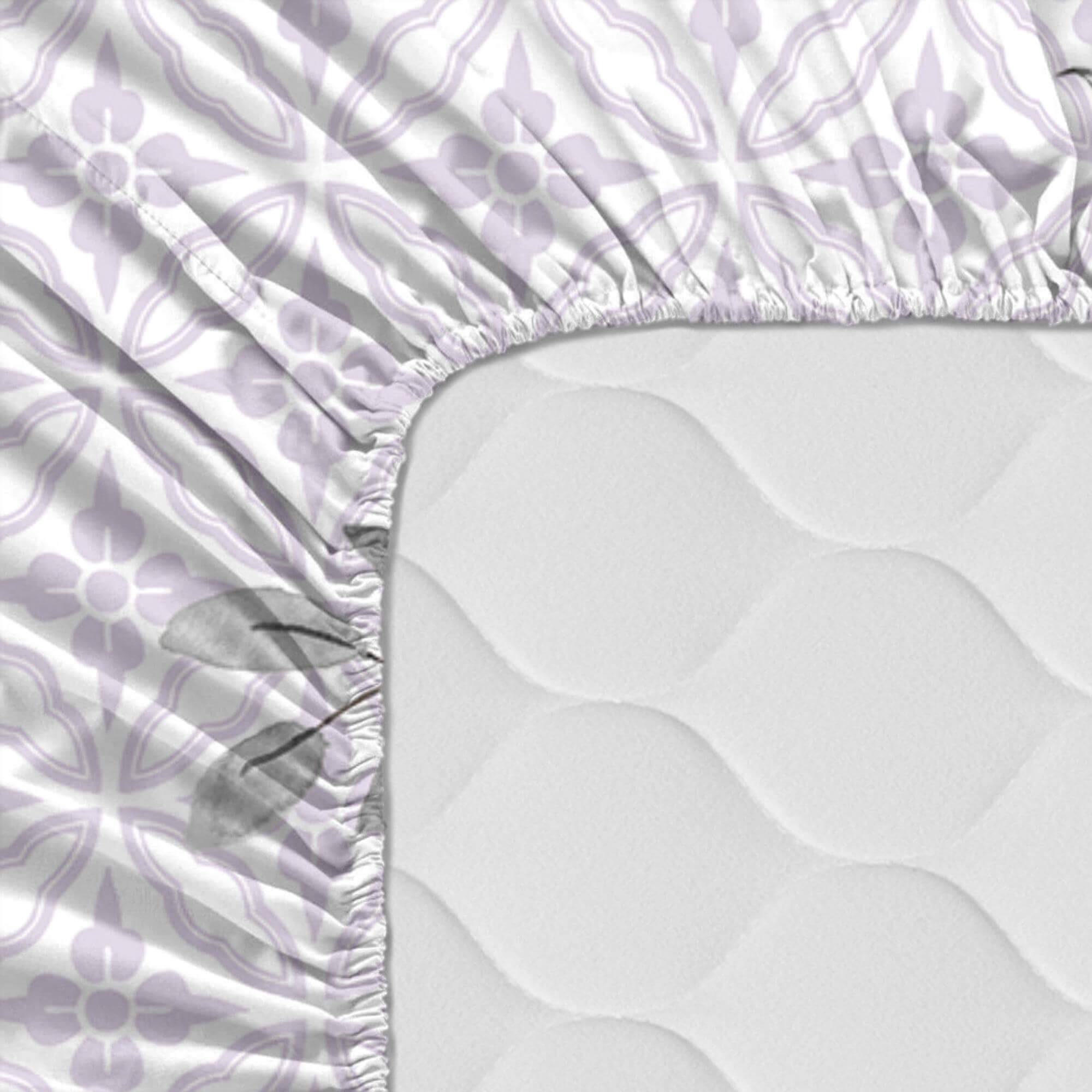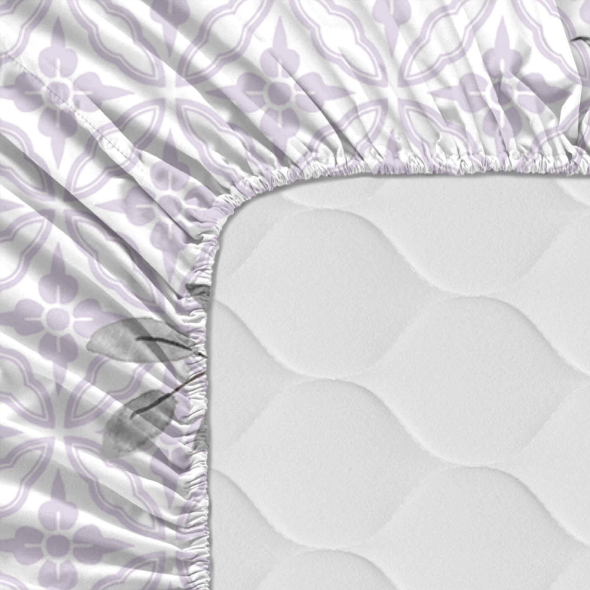100% katoenen hoeslaken, 150 thread count. De hoeken zijn verstelbaar met elastiek.