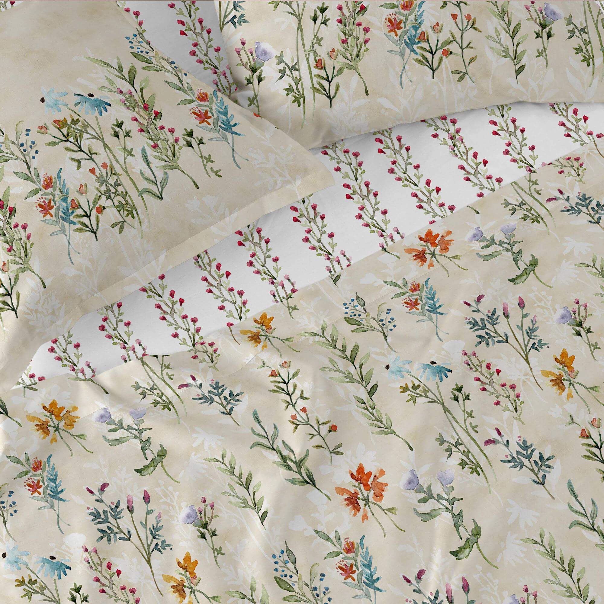De rode bloesems van het op wijnranken geïnspireerde ontwerp van het hoeslaken Vernazza uit de Happyfriday collectie zullen je kamer vullen met de heldere en energieke kleuren van de lente. Wat kan er op tegen de schoonheid van een bloeiende bloem op een witte achtergrond? Dit 100% katoenen hoeslaken met elastische hoeken kan worden gecombineerd met andere producten uit dezelfde collectie.