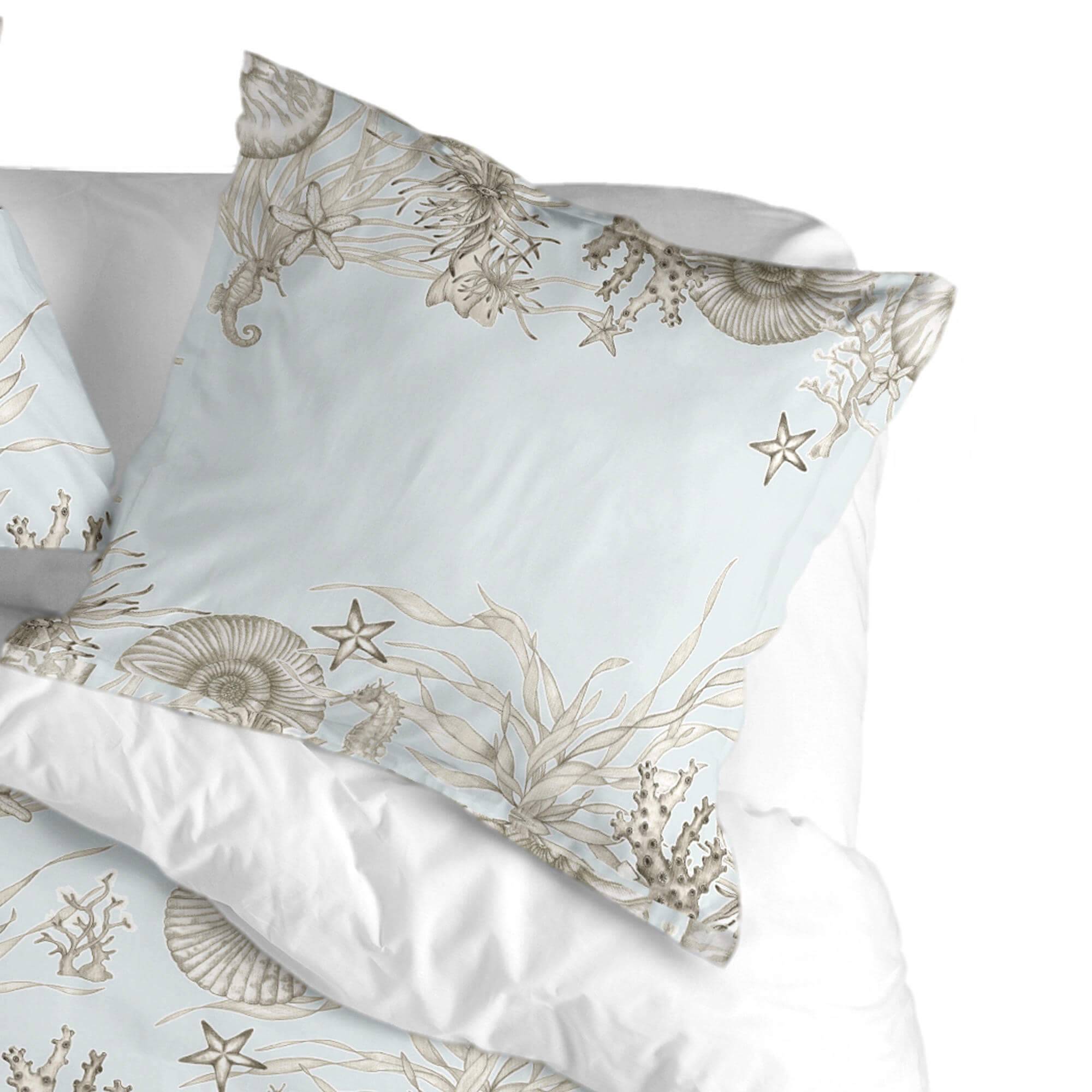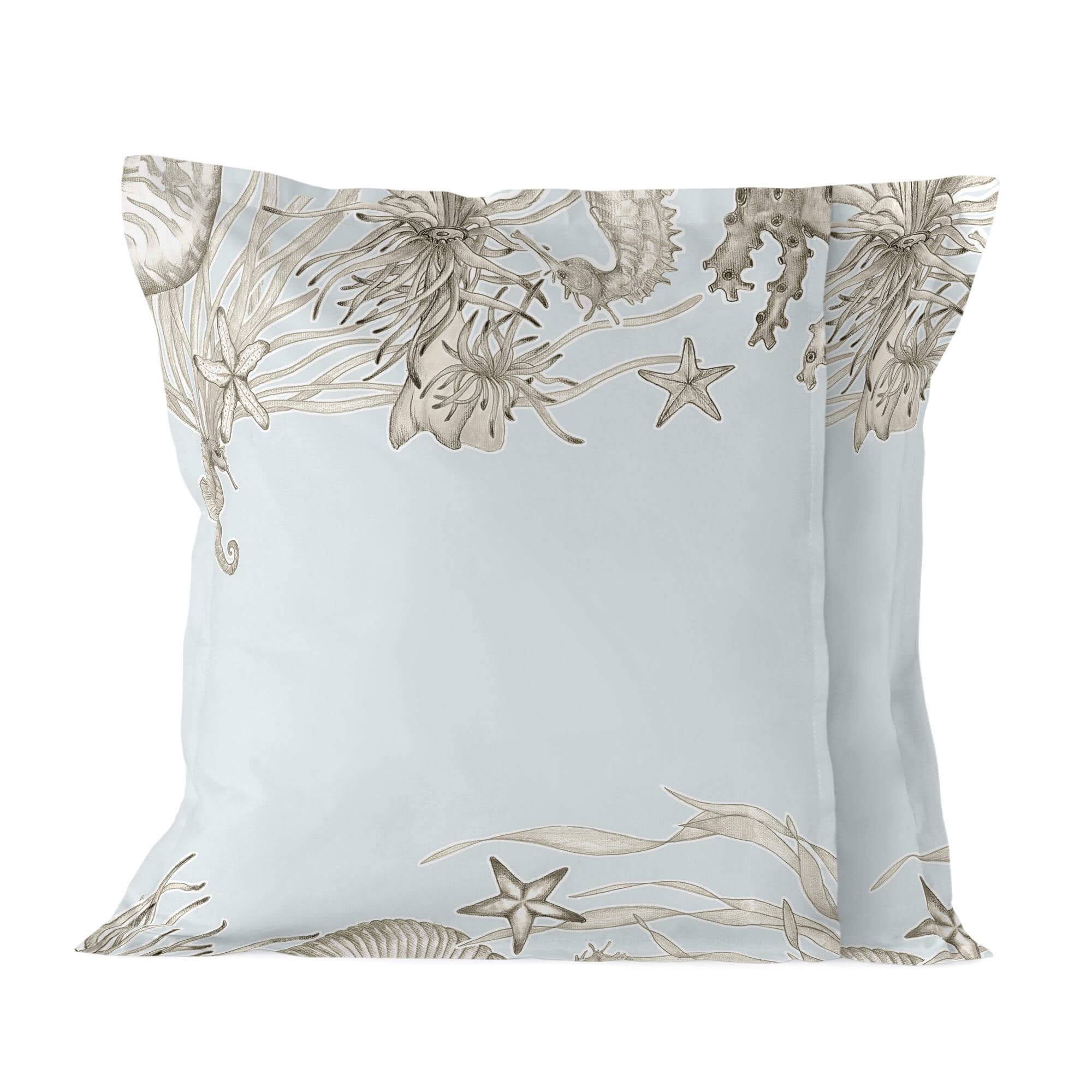 Droom weg in een diepe, vredige slaap omringd door gedetailleerde illustraties van zeeleven in een zee van pastelblauw als je je hoofd laat rusten op het Coral Reef kussensloop uit de Happyfriday collectie. Dankzij de high-definition digitale druk behoudt dit 100% katoenen kussensloop dezelfde heldere lijnen en kleuren als op de eerste dag. Gemaakt in Spanje. Vullingen zijn niet inbegrepen.