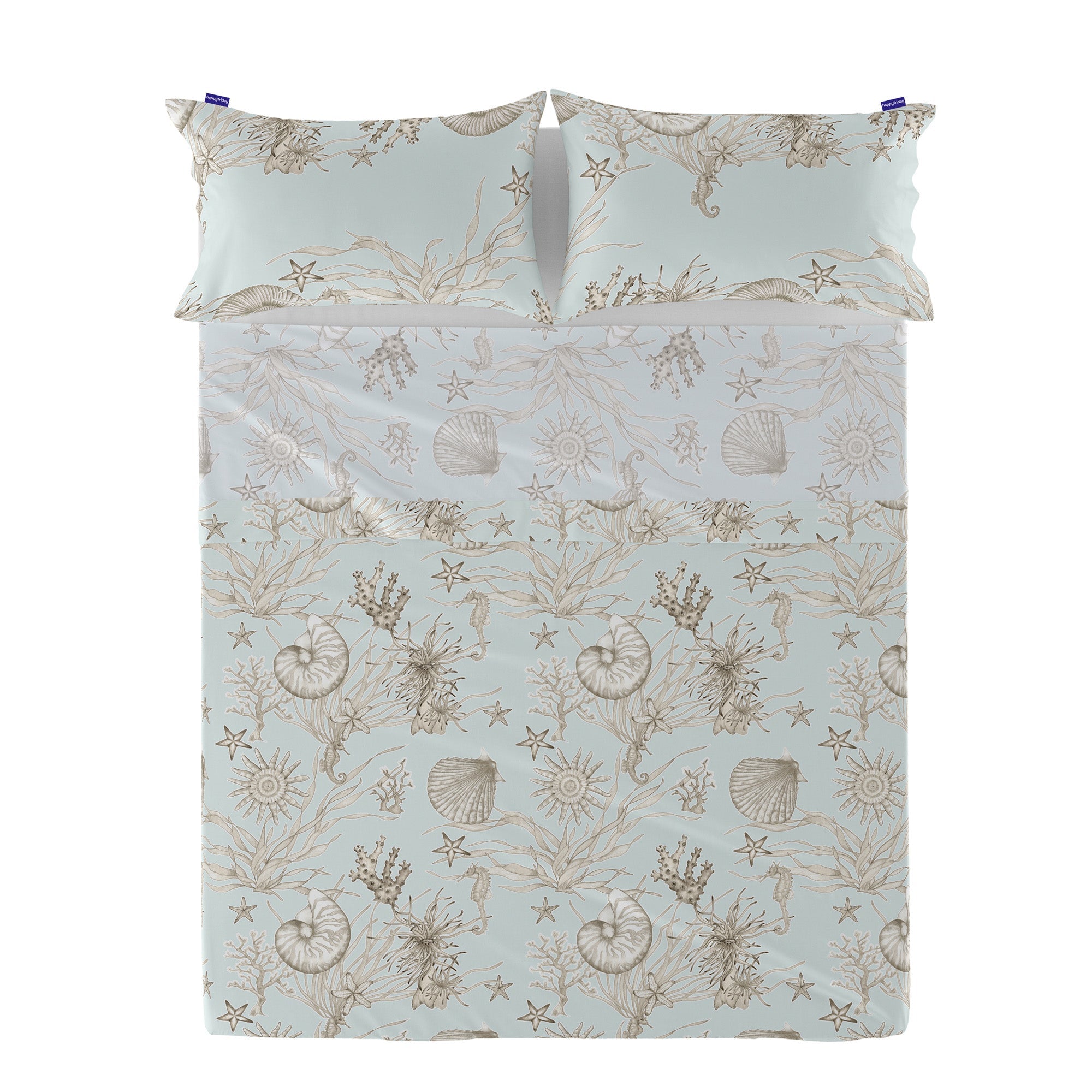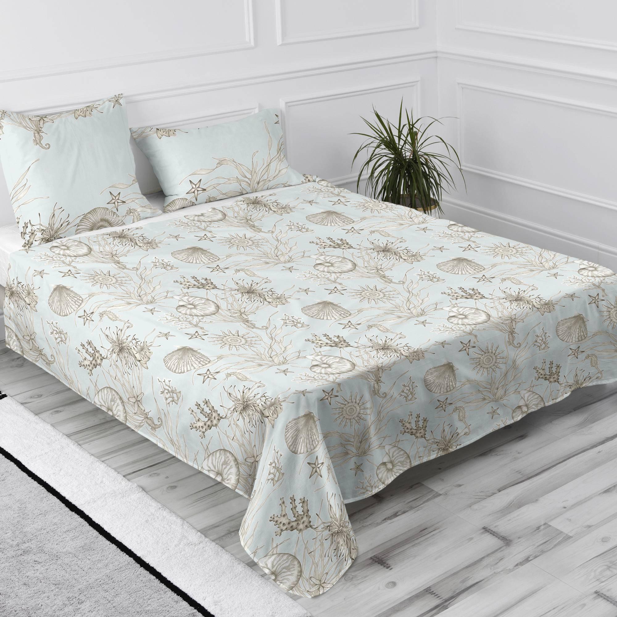 Breng een gevoel van rust in je slaapkamer met het Coral Reef laken uit de Happyfriday collectie. De illustraties van zeeleven op een pastelblauwe zee nodigen uit tot een diepe en vredige slaap. Het potloodpatroon gedrukt op 100% katoen blijft helder en consistent dankzij de high definition digitale print. Kussensloop en hoeslaken niet inbegrepen.