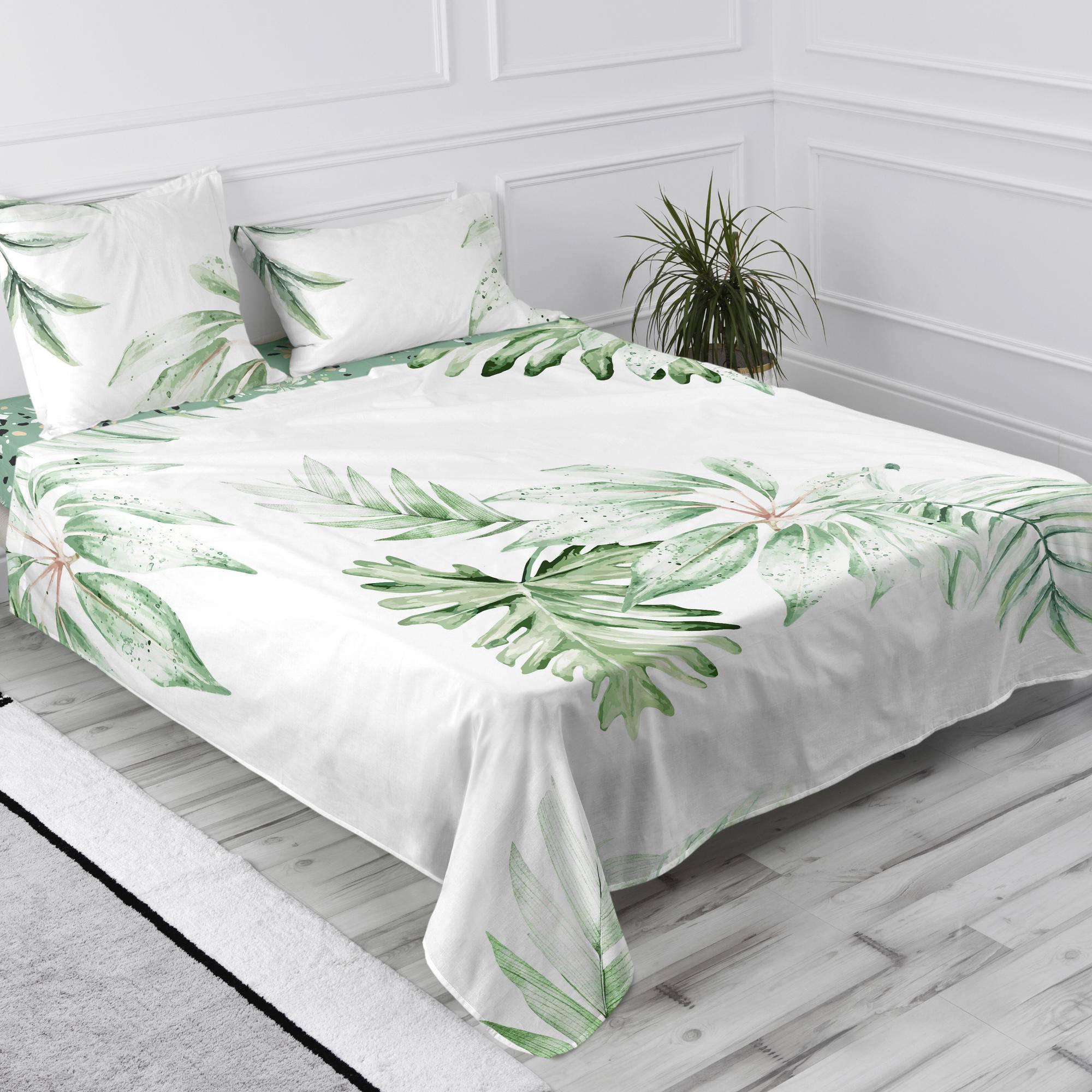 Het frisse en prachtige ontwerp van de weelderige groene aquarelbladeren op het Delicate-bedlaken van Happyfriday brengt de jungle in je kamer. Ervaar uitzonderlijk comfort en zachtheid onder dit 150 thread count 100% katoenen laken met een gladde afwerking. Ideaal voor warme zomernachten. Kussensloop en hoeslaken niet inbegrepen.