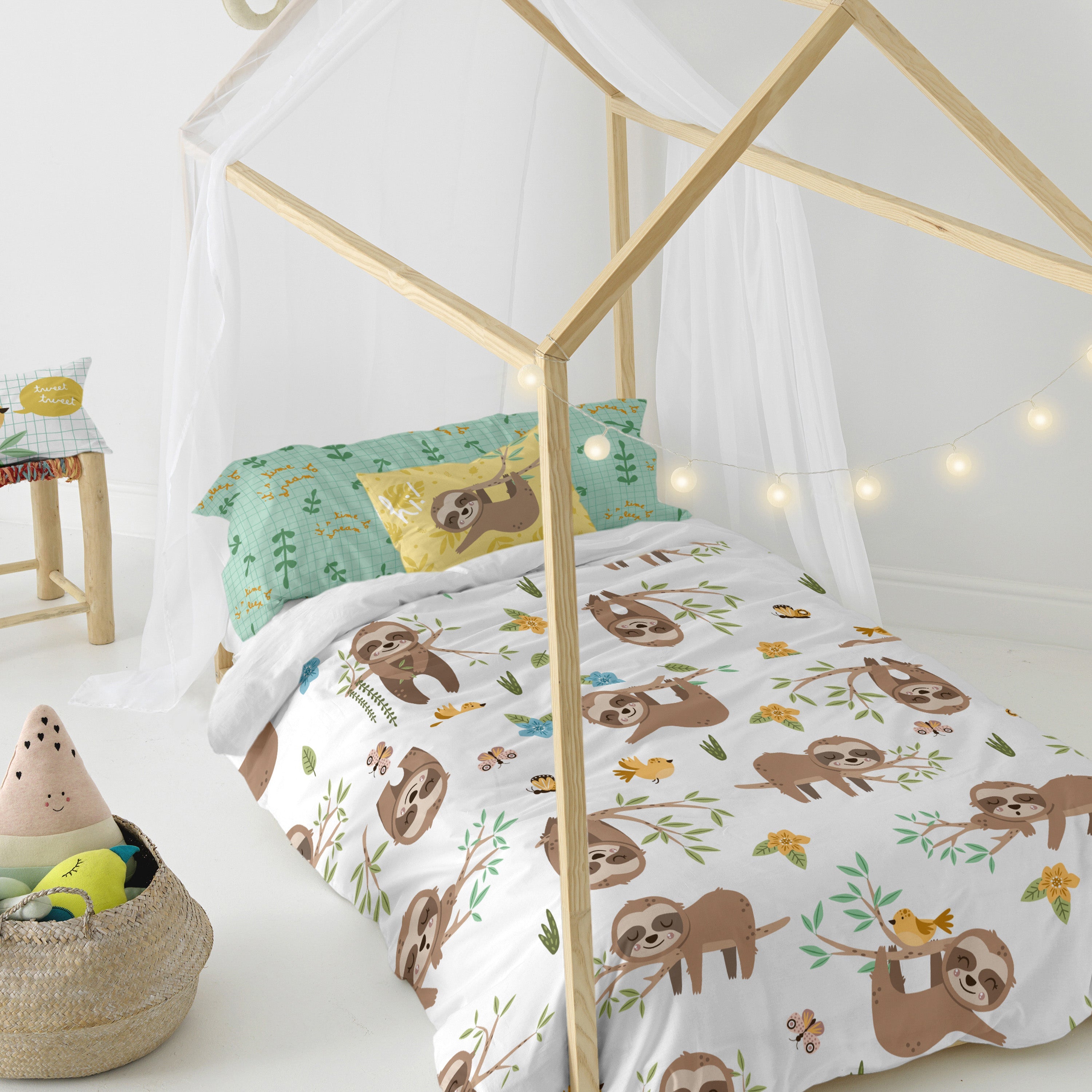 Happy sloth Dekbedovertrek 2-delig Moshi Moshi, Veelkleurig, 100% katoen, de kwaliteit van 150 hilos
