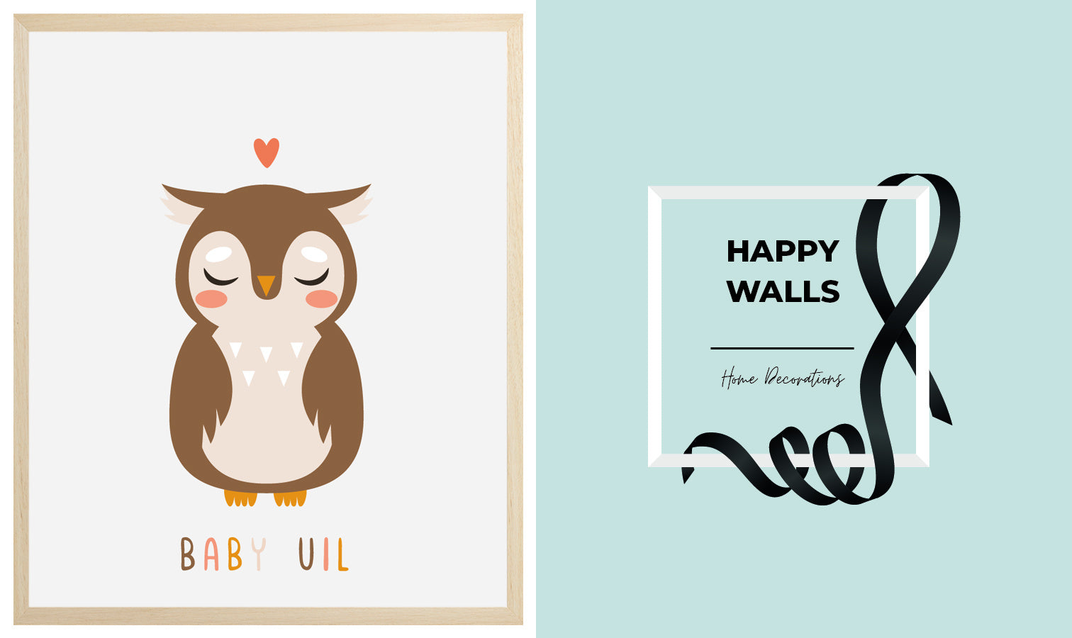 Happy Walls - Baby Uil in mooie houten Fotolijst - A3 formaat 30x40 cm