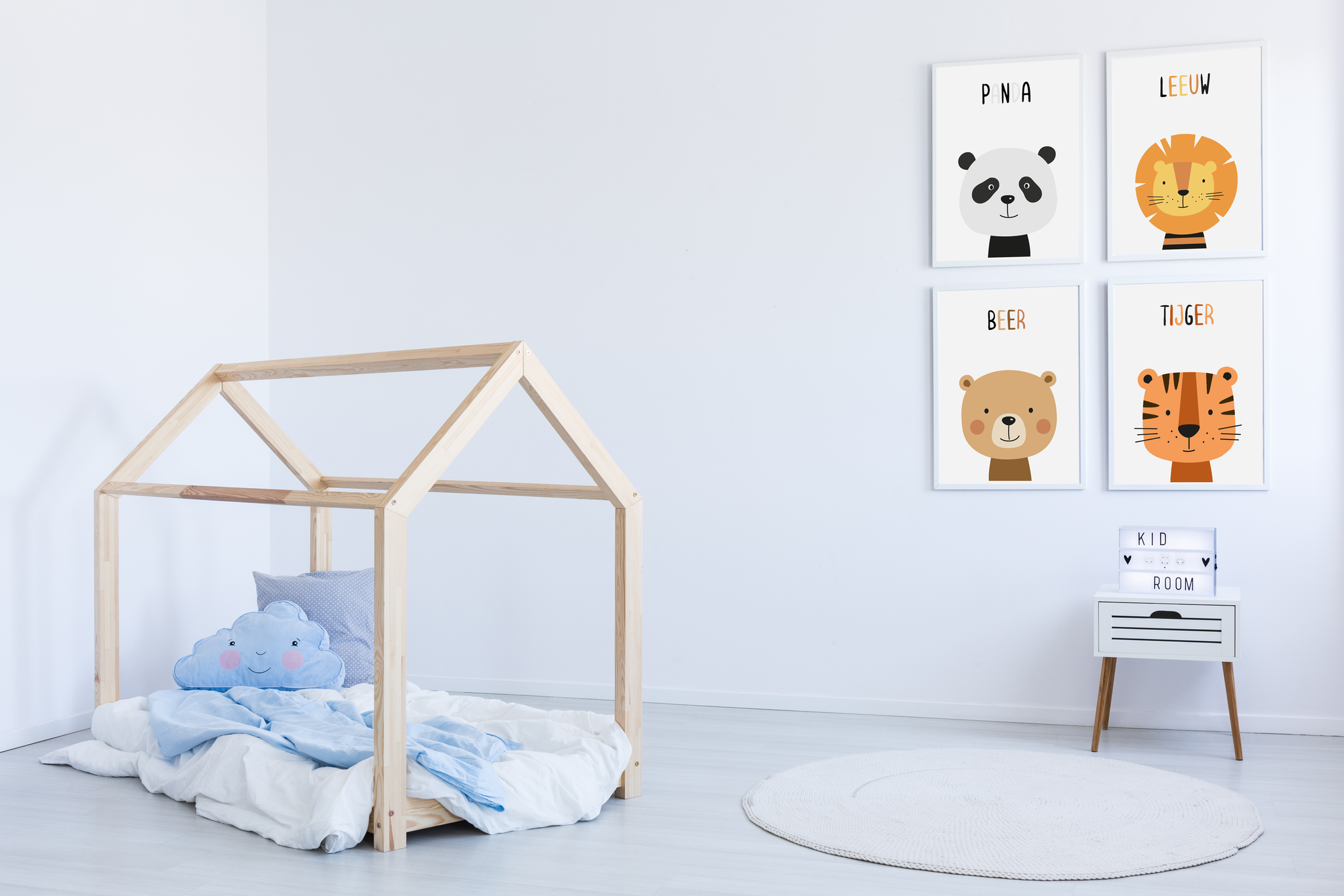 Mooie posters van schattige baby diertjes, waarmee je een babykamer of kinderkamer leuk kunt inrichten. Deze variant beschikt over een witte achtergrondkleur, waardoor de diertjes er extra leuk uitspringen. De posters staan extra leuk boven het baby of kinderbed. Je kind kan lekker wegdromen, terwijl hij of zij naar alle wilde dieren ligt te kijken. Je kunt de posters ook los ophangen of op een kast/ commode zetten. Deze set bevat maar liefs 4 posters van A3-formaat (30 cm x 40 cm):