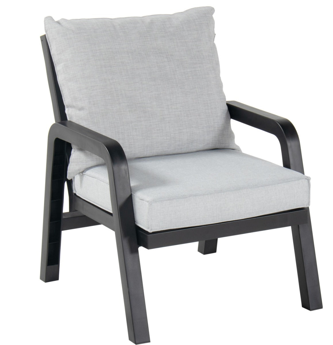Kunststof loungestoel inclusief lichtgrijze kussens