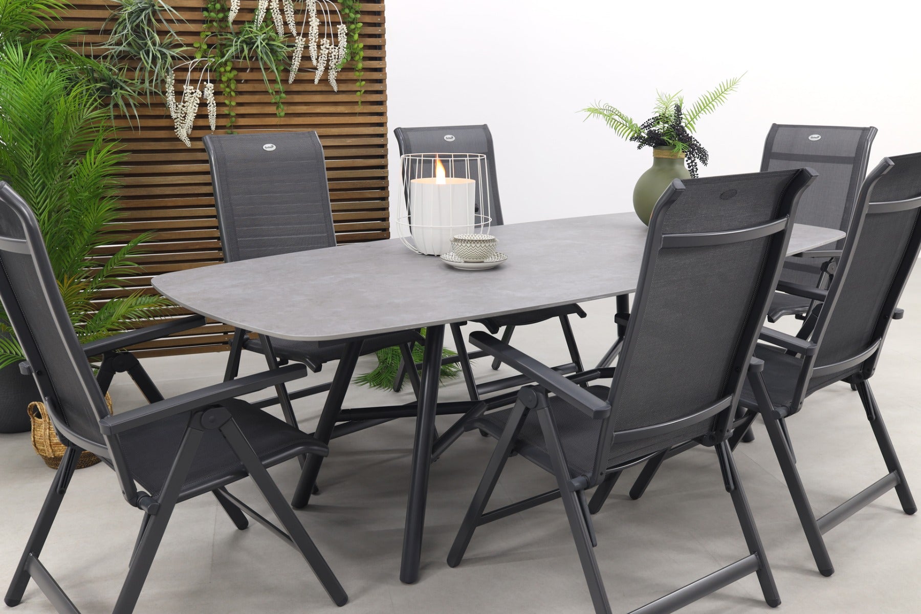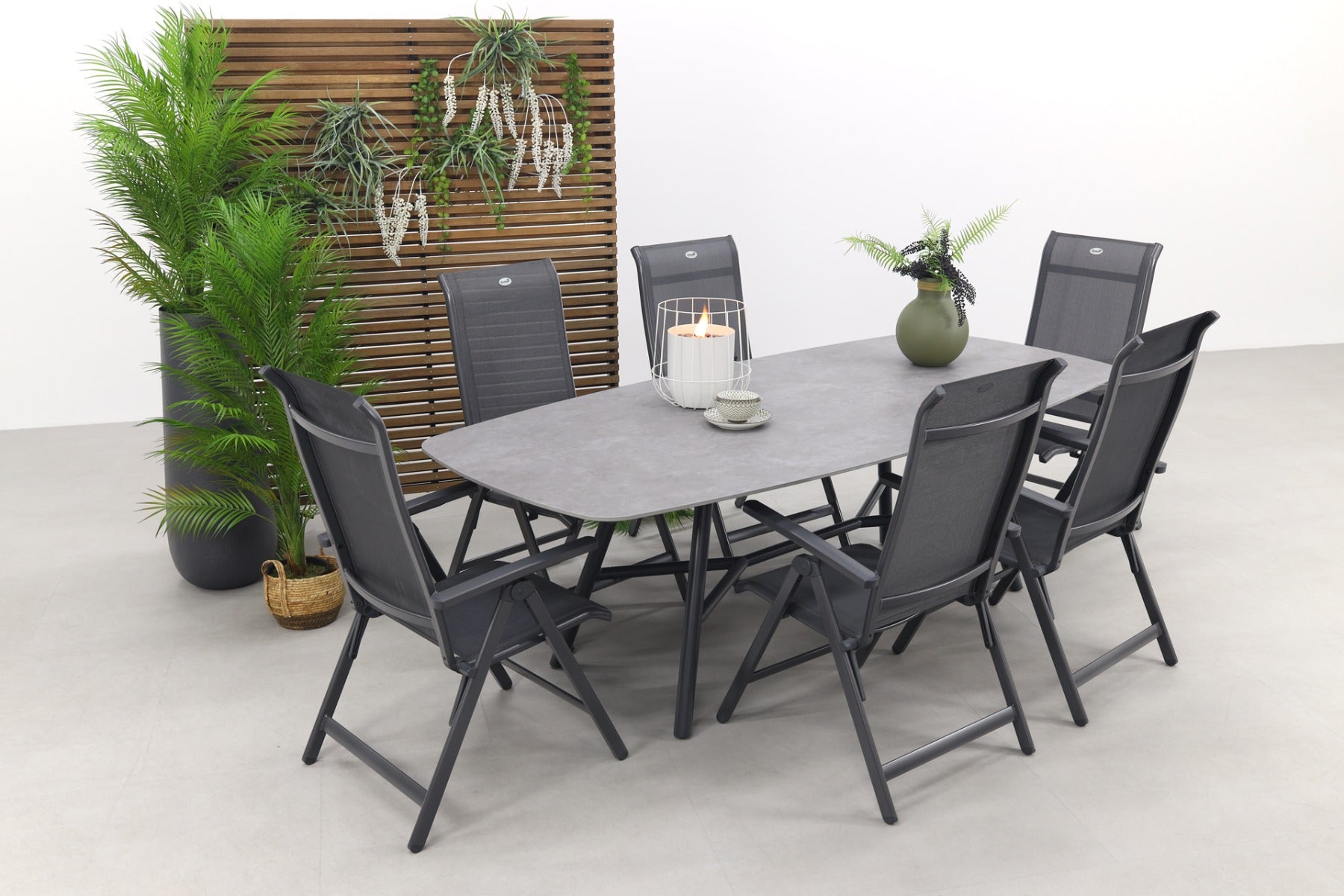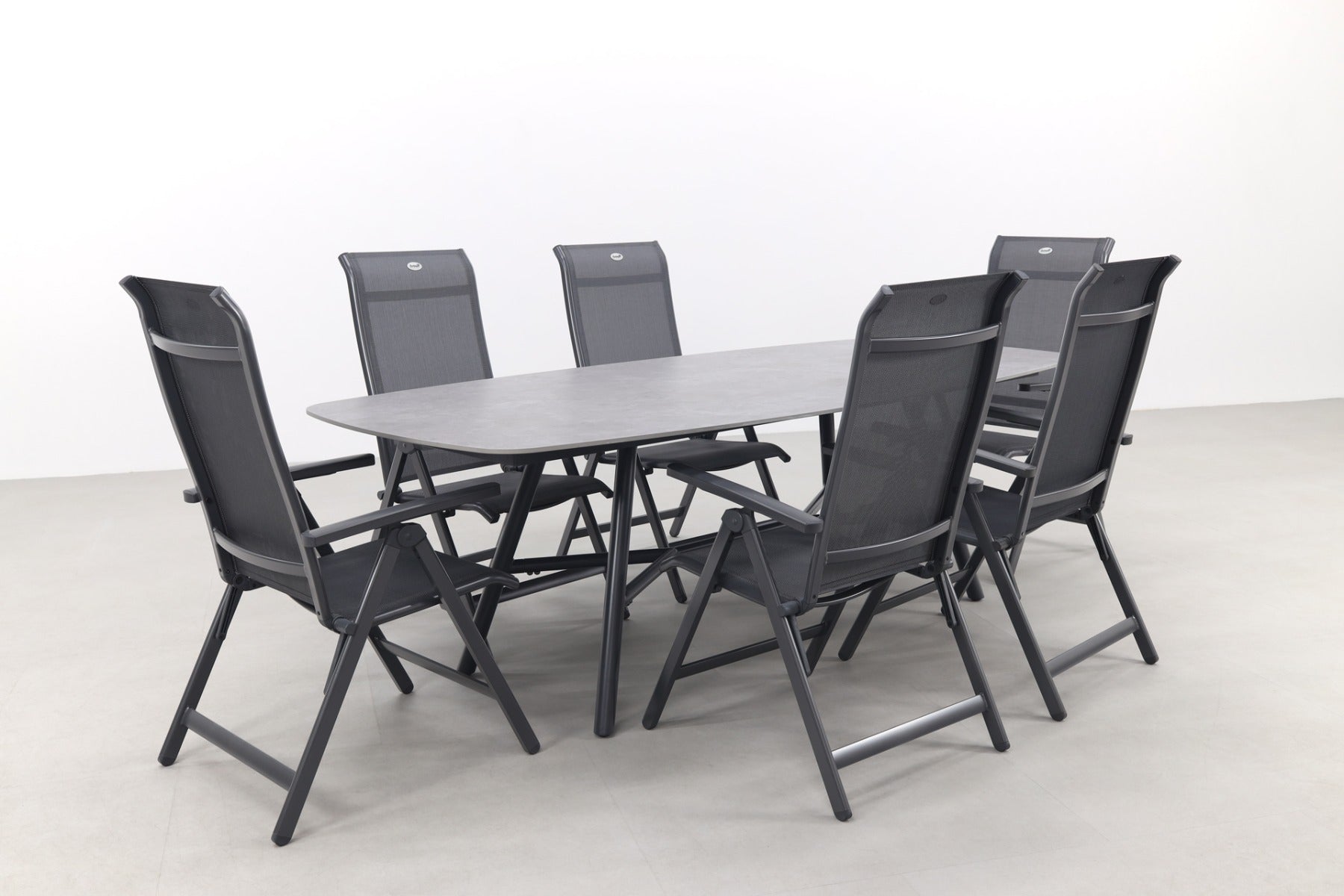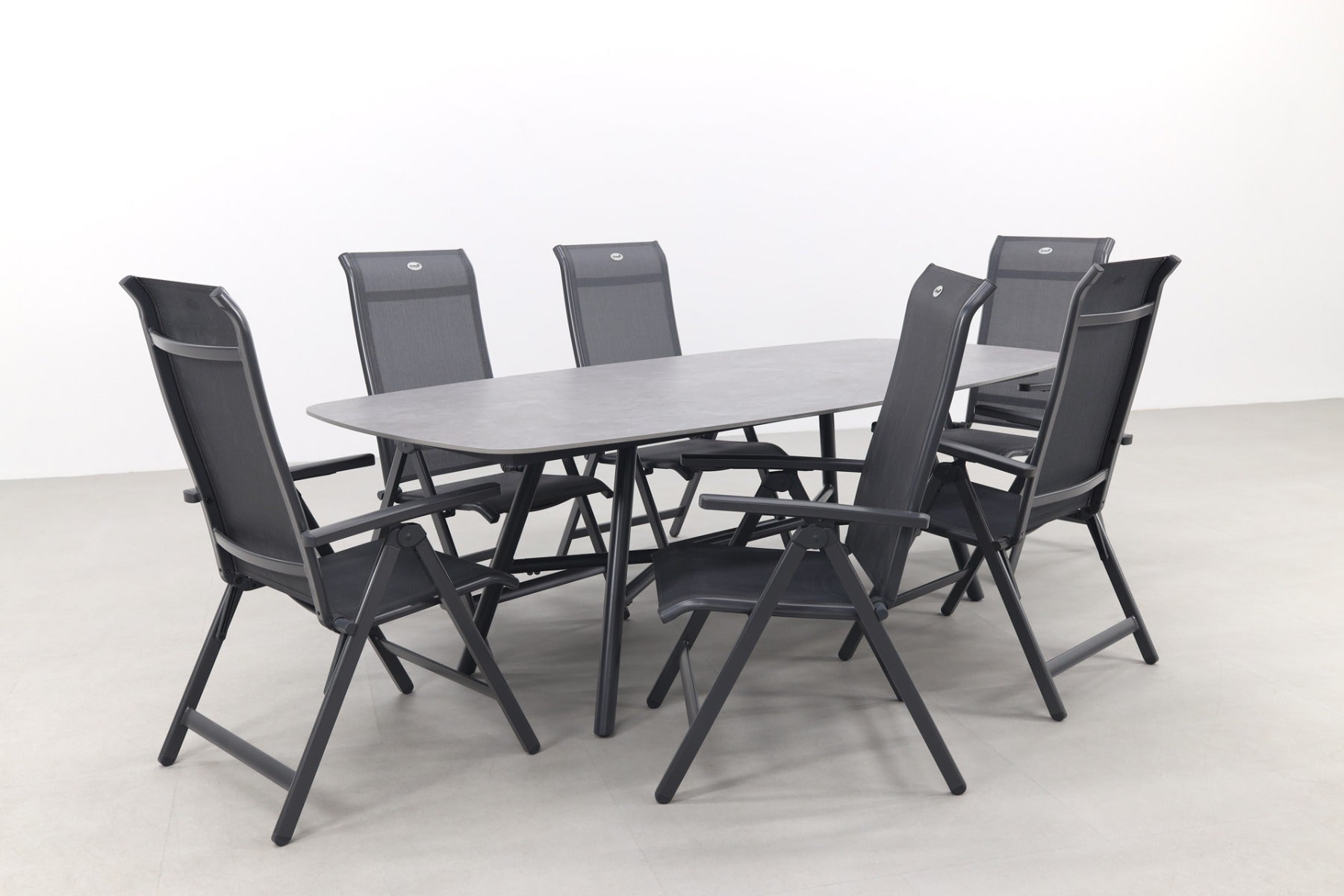 6x Hartman Milaan verstelbare tuinstoel 1x Hartman Benevento Deens ovale tuintafel