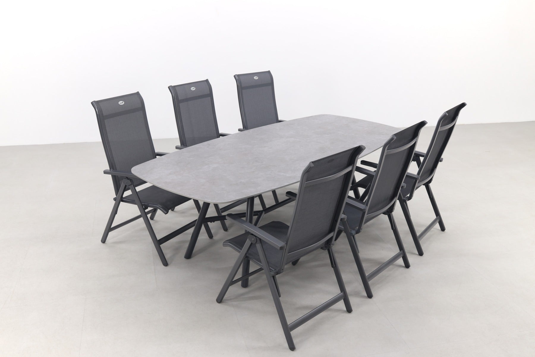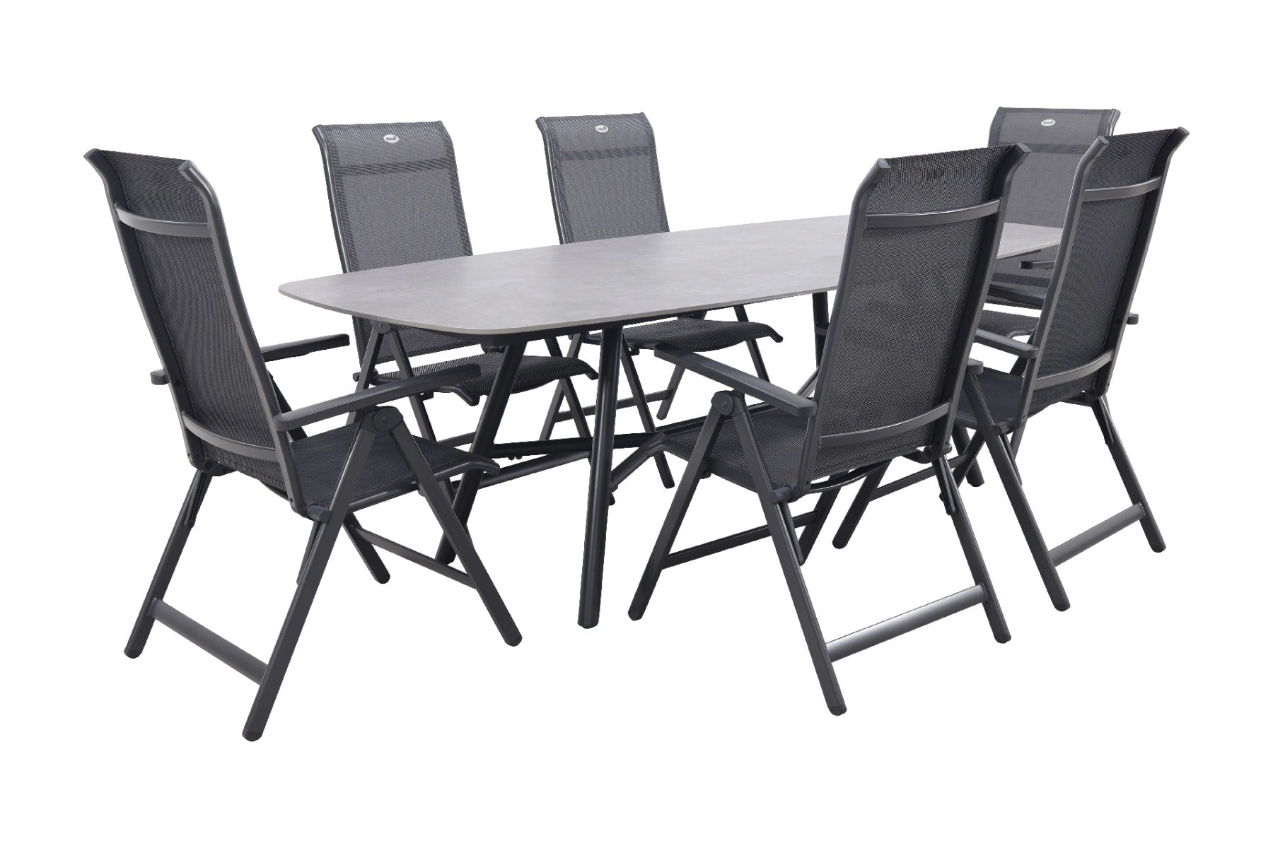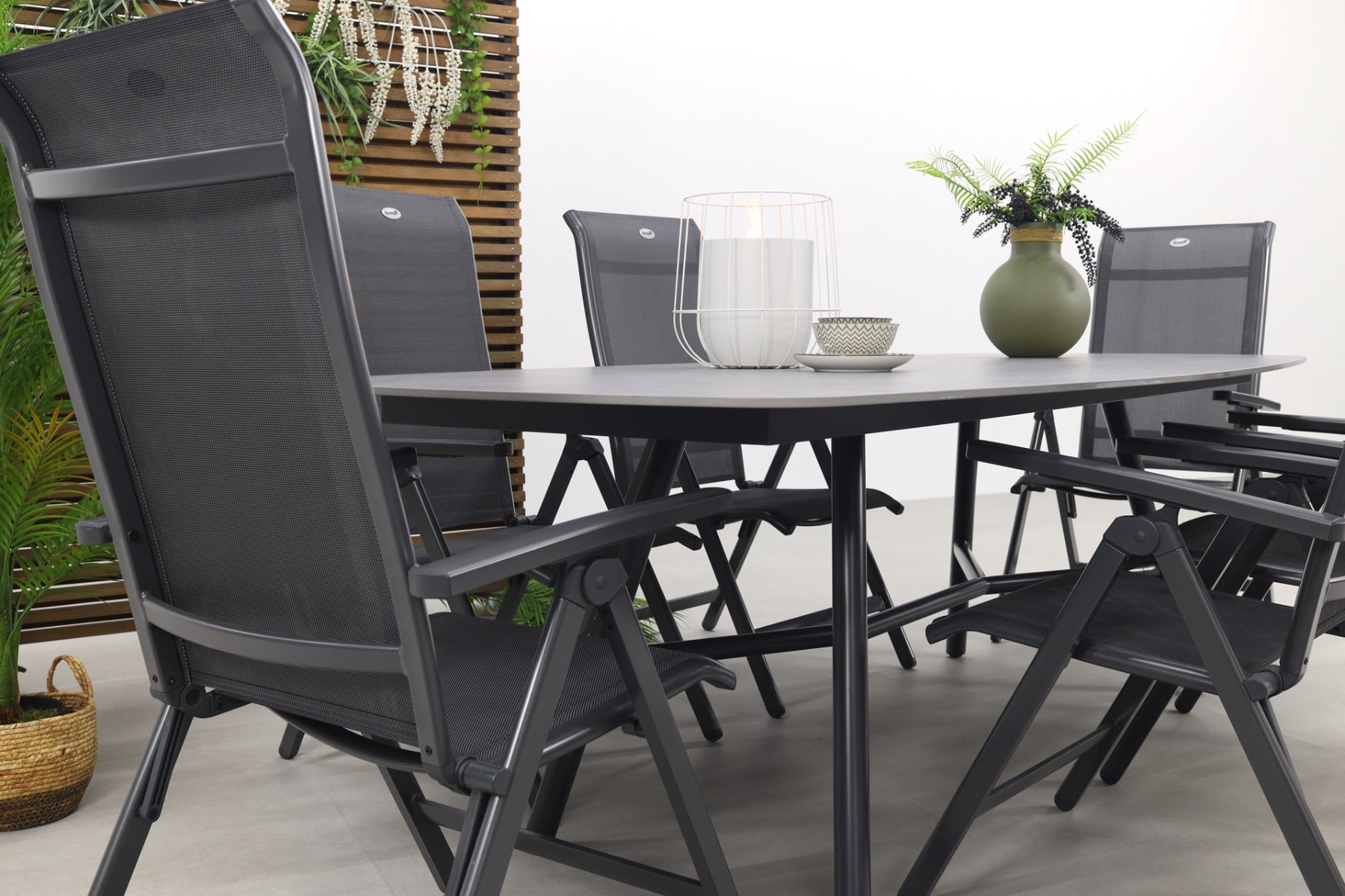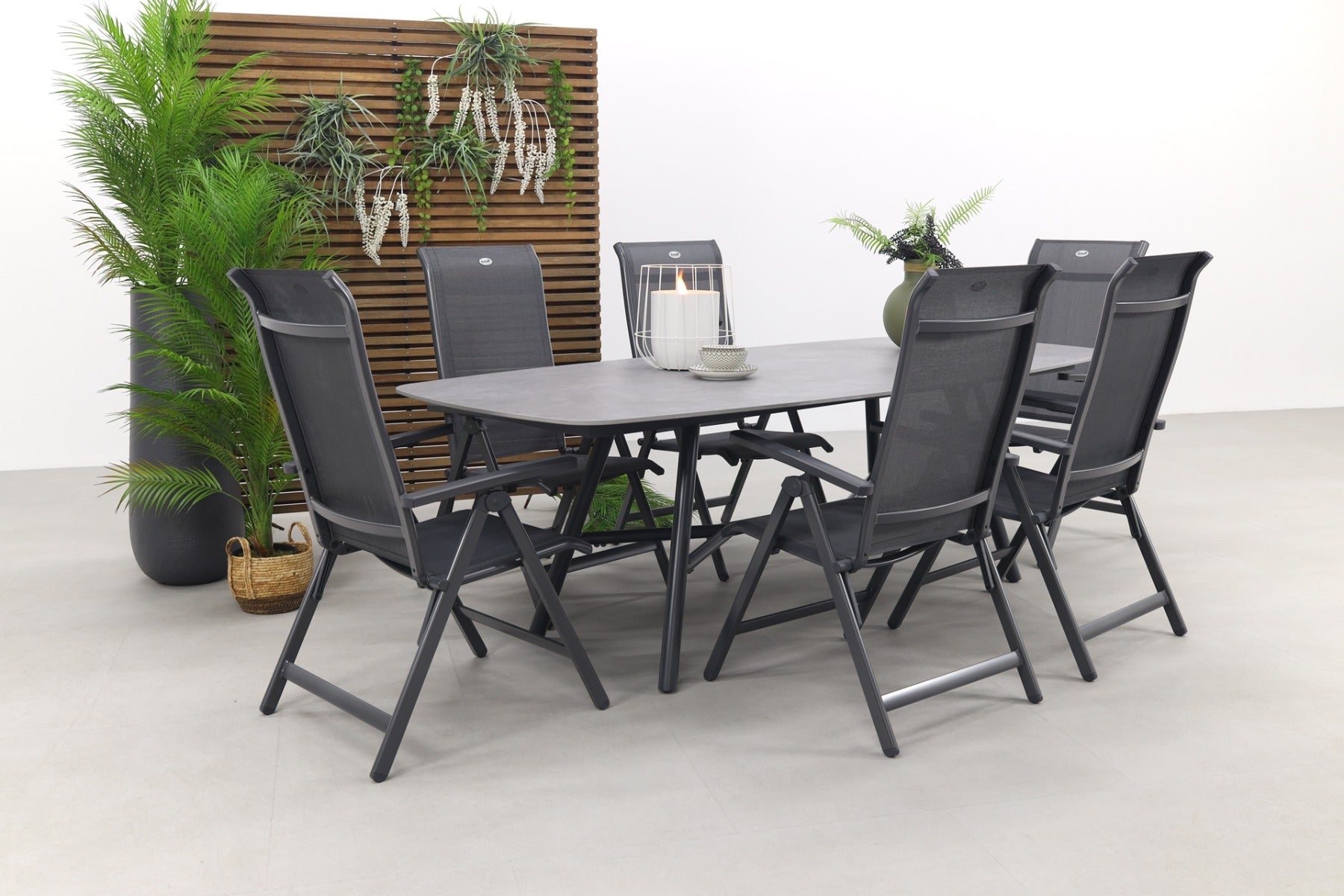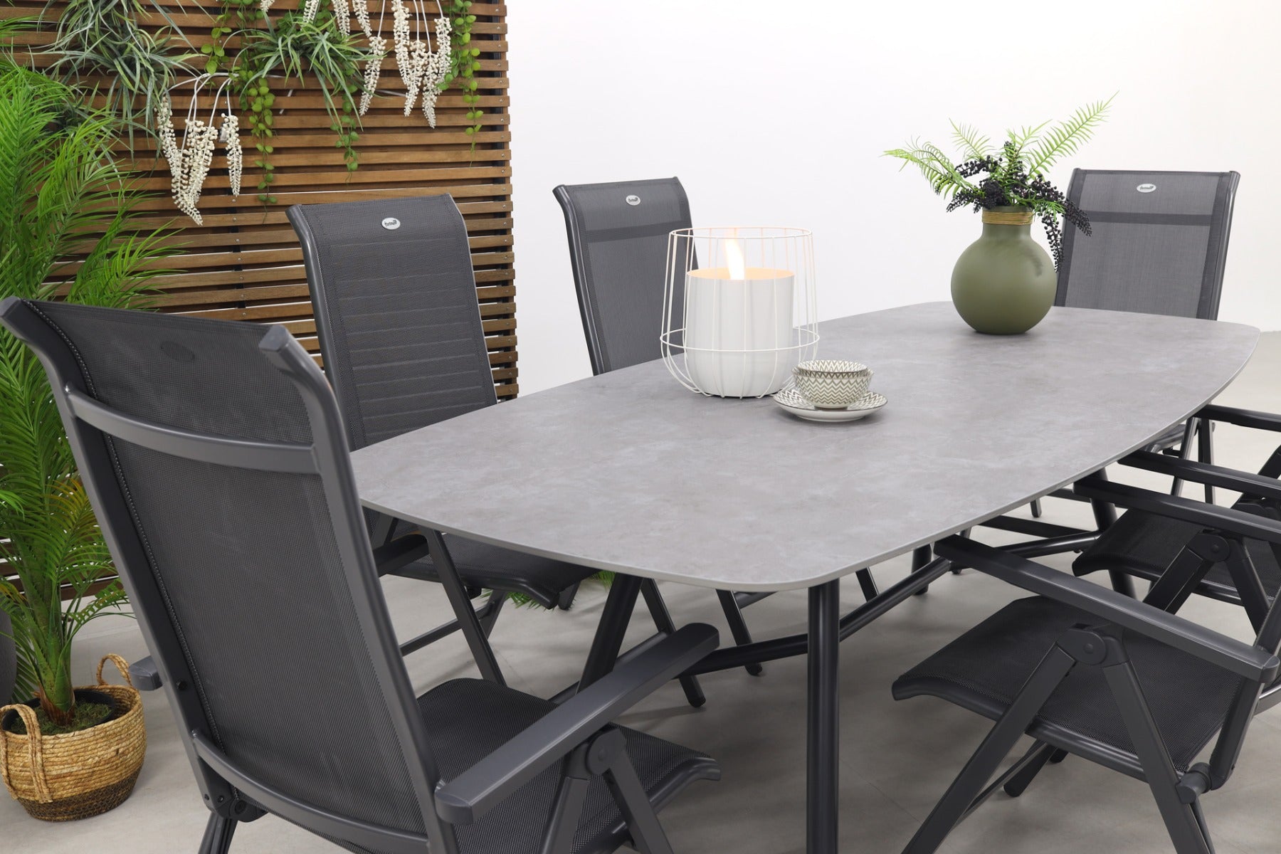 6x Hartman Milaan verstelbare tuinstoel 1x Hartman Benevento Deens ovale tuintafel