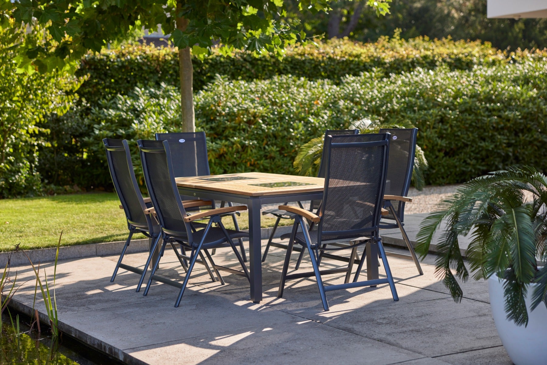 Deze aluminium verstelbare stoel in een topper voor in uw tuin. Door de textilene zitting heeft u comfortabele zitcomfort.