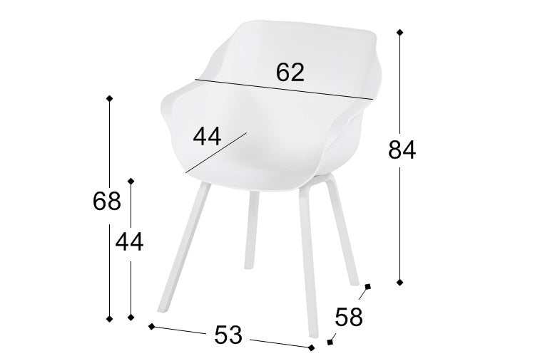 De kunststof kuip is voorgevormd, dit zorgt ervoor dat de stoel een ergonomisch zitcomfort biedt en daardoor dus erg lekker zit. Het frame van de Hartman Sophie Studio aluminium stoel is gemaakt van Aluminium. Voor dit materiaal is bewust gekozen omdat dit sterk en onderhoudsvriendelijk is! Het frame is wit gecoated zodat het mooi aansluit bij de kunststof witte kuip.