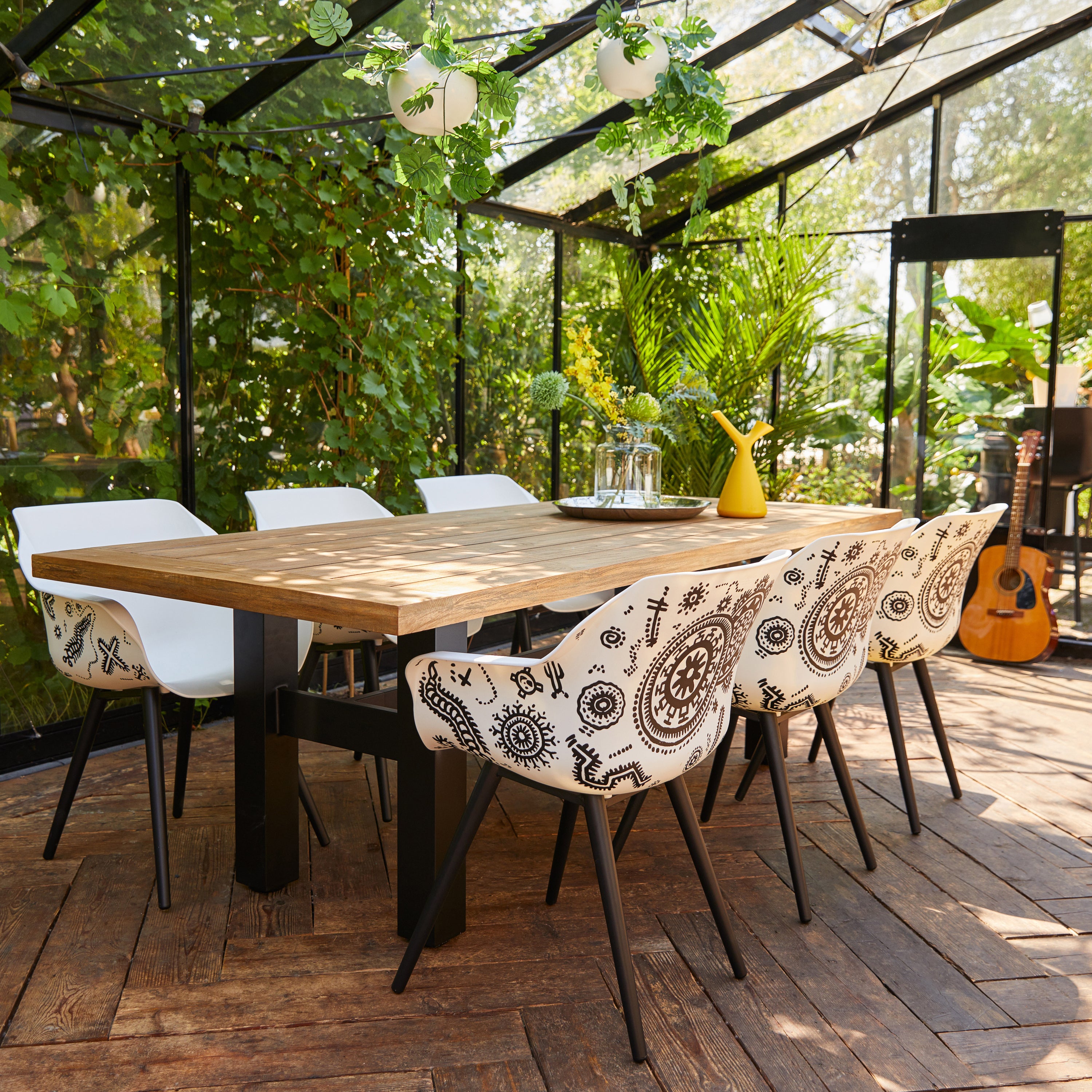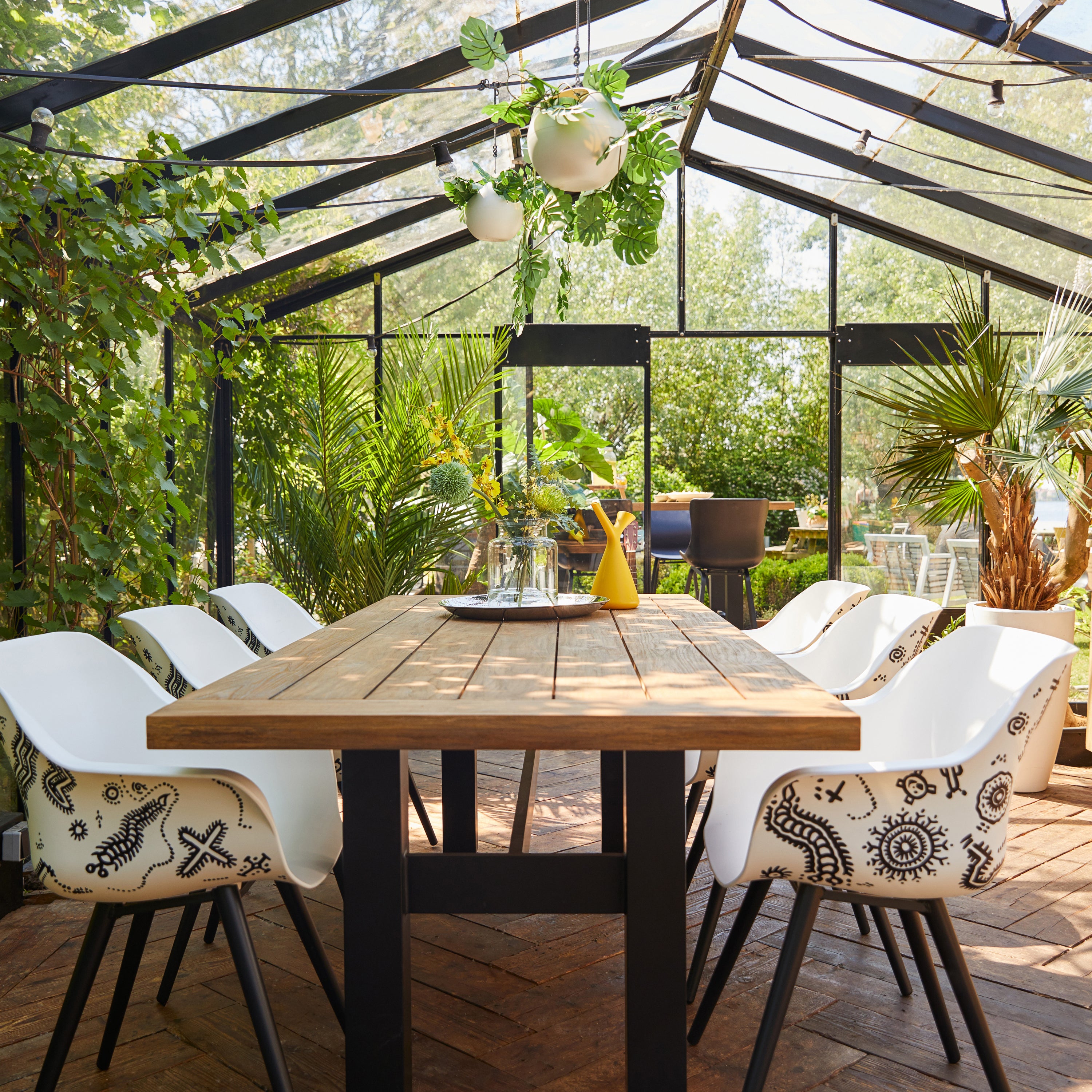 - Deze stoere tuintafel meet H 76 x B 240 x D 100 cm